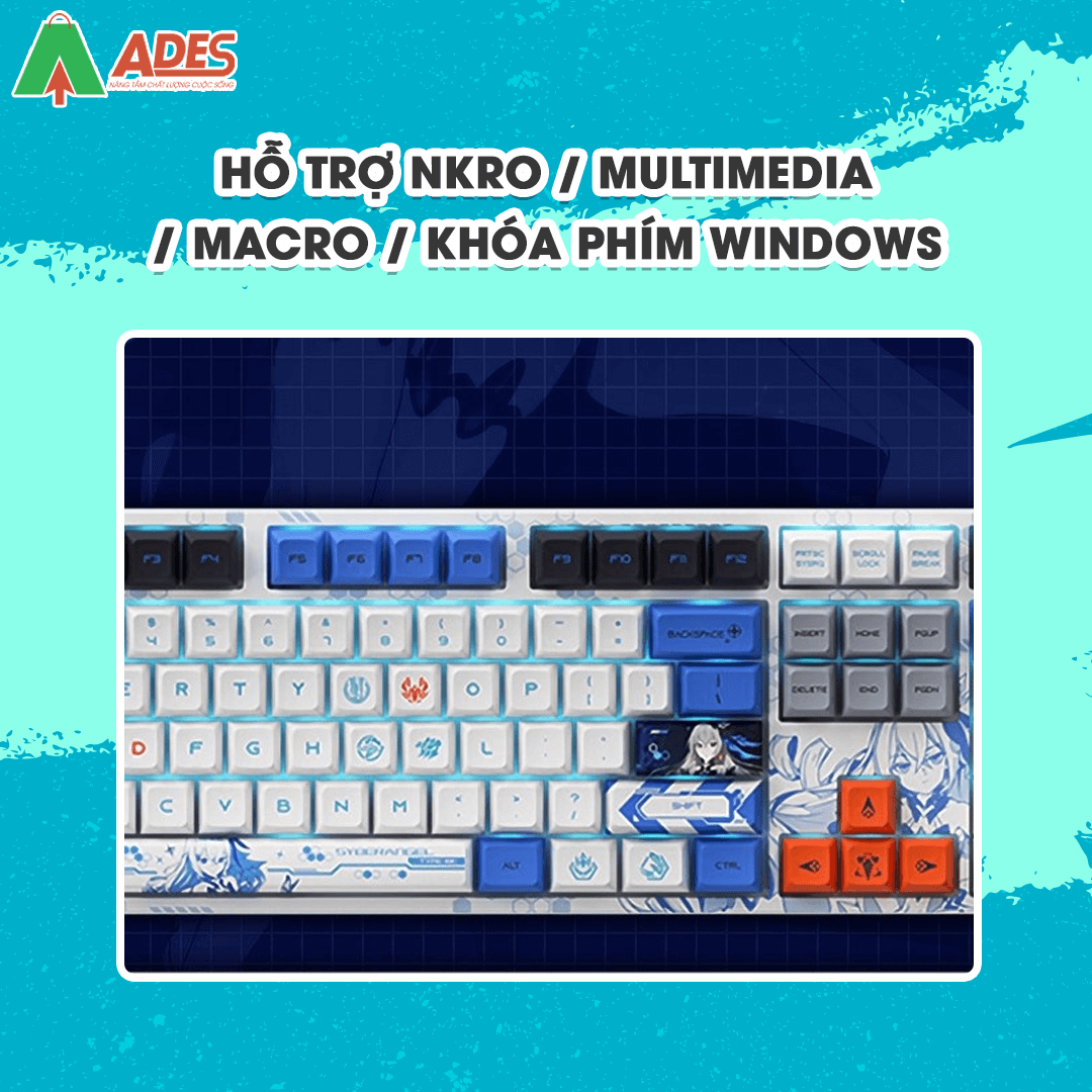 - Bàn phím AKKO AKKO Honkai Impact 3rd – Bronya Zaychik hỗ trợ multimedia, macro và có thể khóa phím windows.