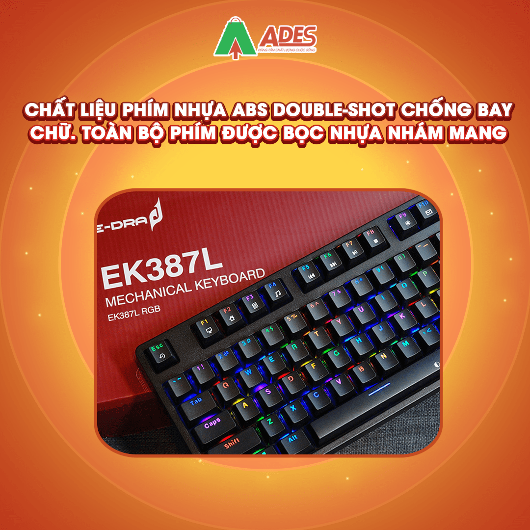 E-Dra EK387L được trang bị phần khung và vỏ phím được làm từ chất liệu nhựa cứng cực kì dày dặn, người dùng sẽ dễ dàng cảm nhận ngay được sự chắc chắn của chiếc bàn phím khi cầm trên tay.