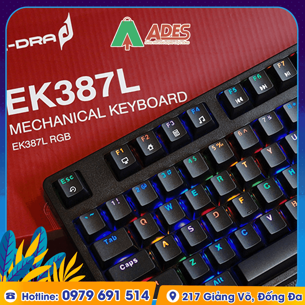 Bàn phím cơ Edra EK387L RGB hiện đang được phân phối giá rẻ, chính hãng tại điện máy ADES. Để đặt mua sản phẩm, truy cập ngay vào website ADESTECH - HOTLINE 09.7969.1514 hoặc đến địa chỉ 217 Giảng Võ, Hà Nội để xem trực tiếp sản phẩm.