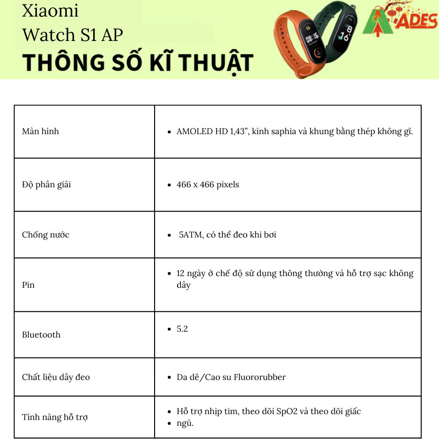 Lựa chọn hoàn hảo cho phong cách sống hiện đại Nếu bạn đang tìm kiếm một chiếc đồng hồ thông minh vừa sang trọng vừa đa năng, Xiaomi Watch S1 AP là sự lựa chọn không thể bỏ qua. Với thiết kế đẳng cấp, màn hình tuyệt đẹp, khả năng theo dõi sức khỏe toàn diện và trợ lý thông minh, đây sẽ là người bạn đồng hành lý tưởng giúp bạn chinh phục mọi thử thách trong cuộc sống.