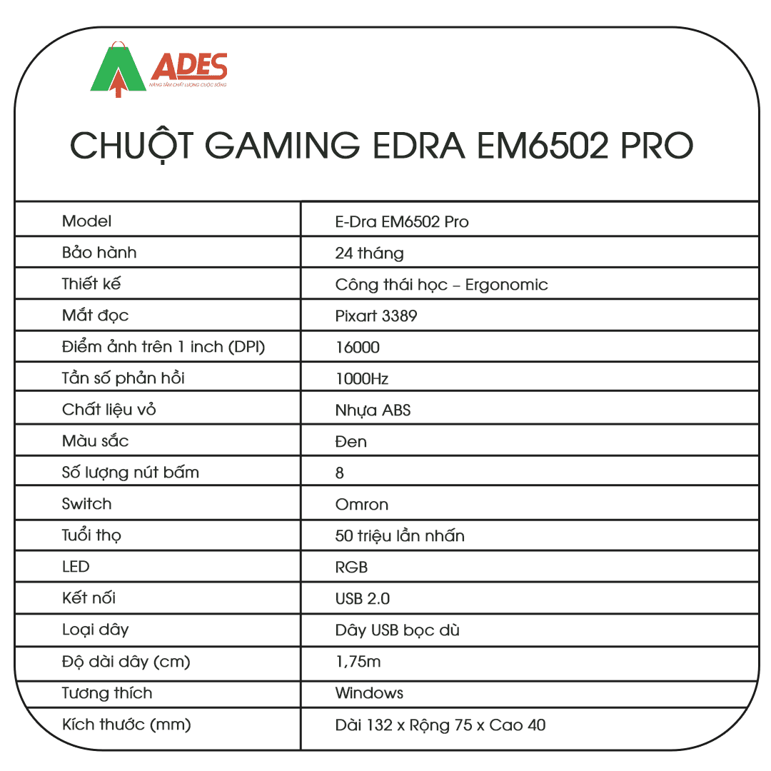 Chuột Gaming E-Dra EM6502 Pro cực ngon thiết kế hầm hố, tiện lợi, thiết kế công thái học thuận tay phải cực kỳ thoải mái với 2 nút tiện dụng bên cạnh trái. Hãy cùng ADES Vietnam tìm hiểu về sản phẩm này nhé!