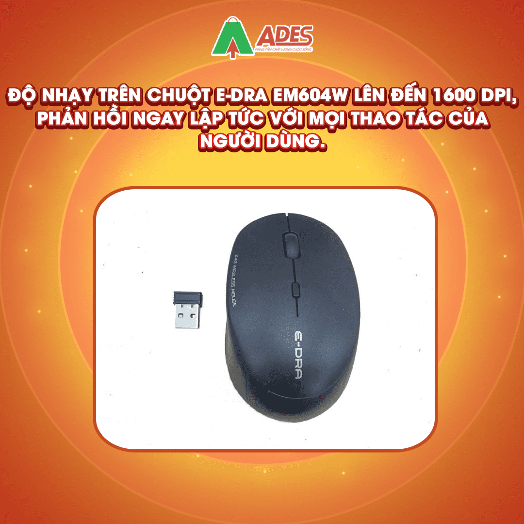 Độ nhạy trên chuột E-Dra EM604W lên đến 1600 DPI, phản hồi ngay lập tức với mọi thao tác của người dùng.