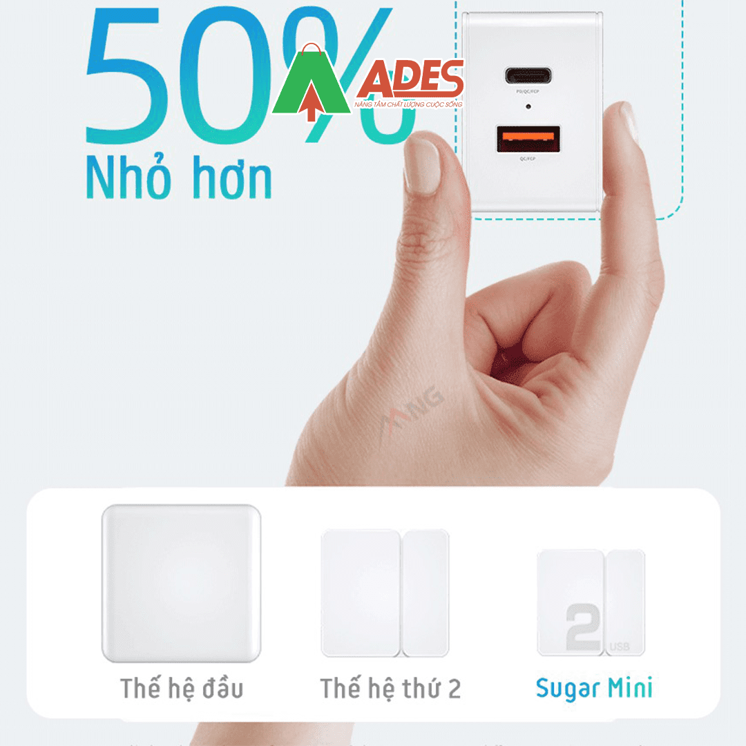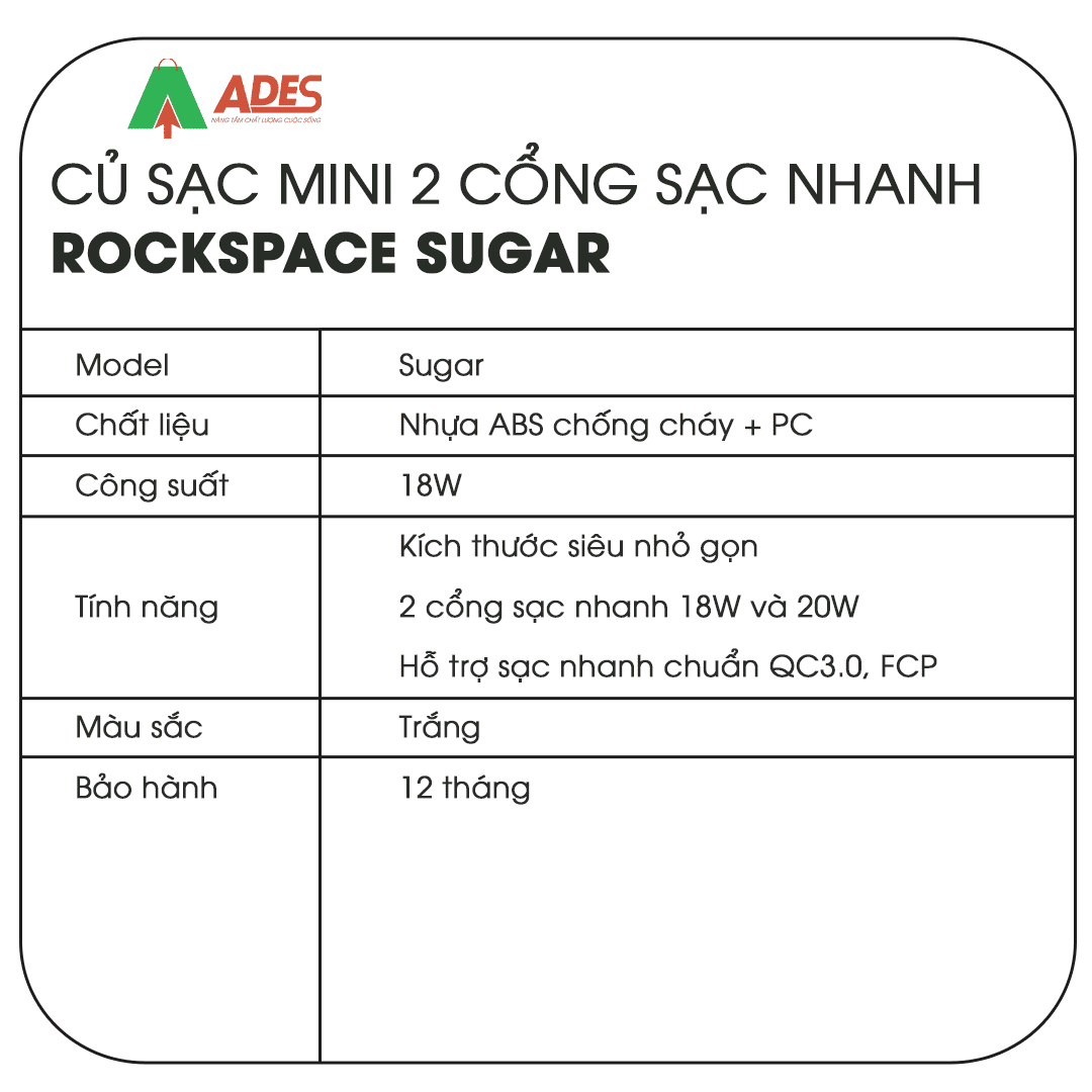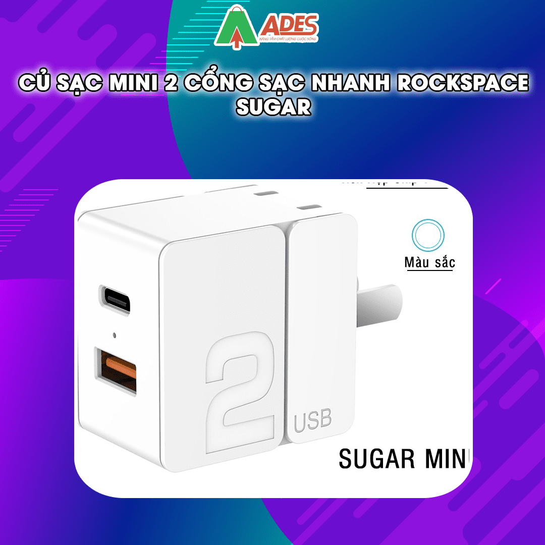 Củ sạc mini 2 cổng sạc nhanh Rockspace Sugar chuẩn sạc nhanh PD, QC. Hãy cùng ADES Vietnam tìm hiểu thêm về sản phẩm này nhé