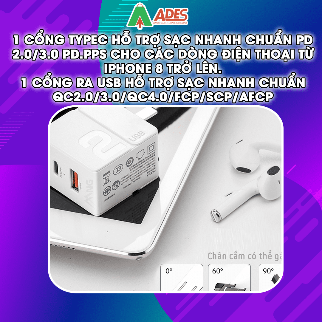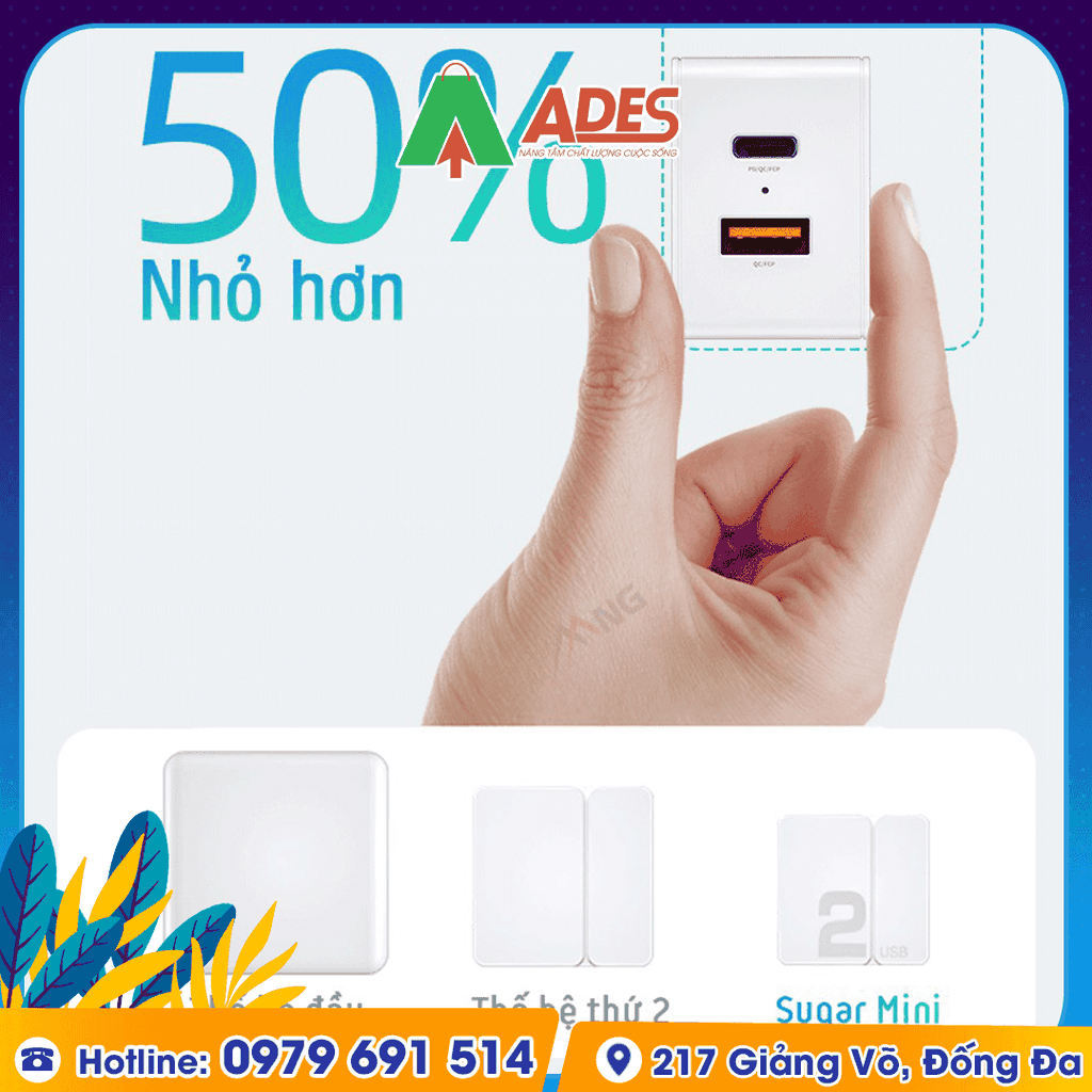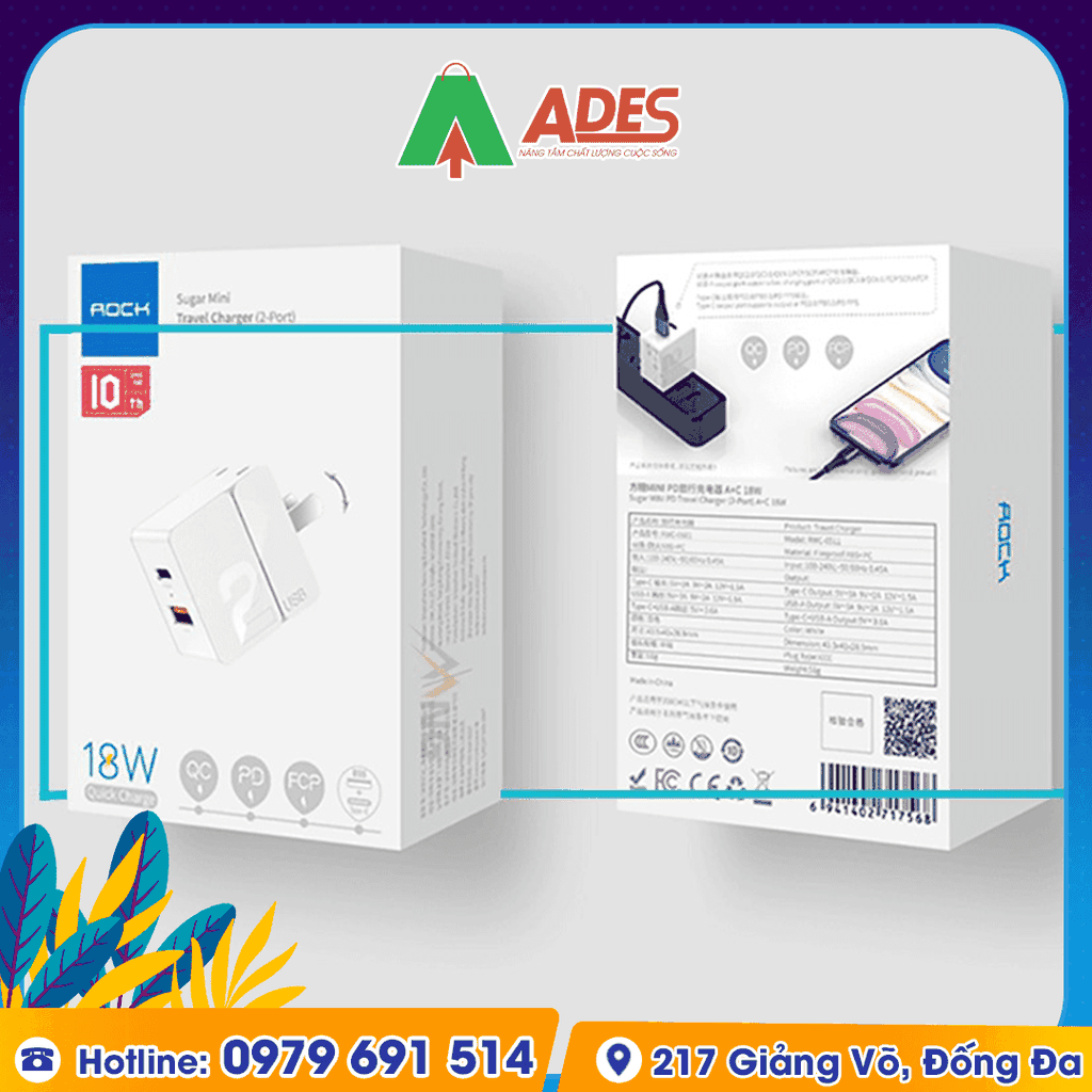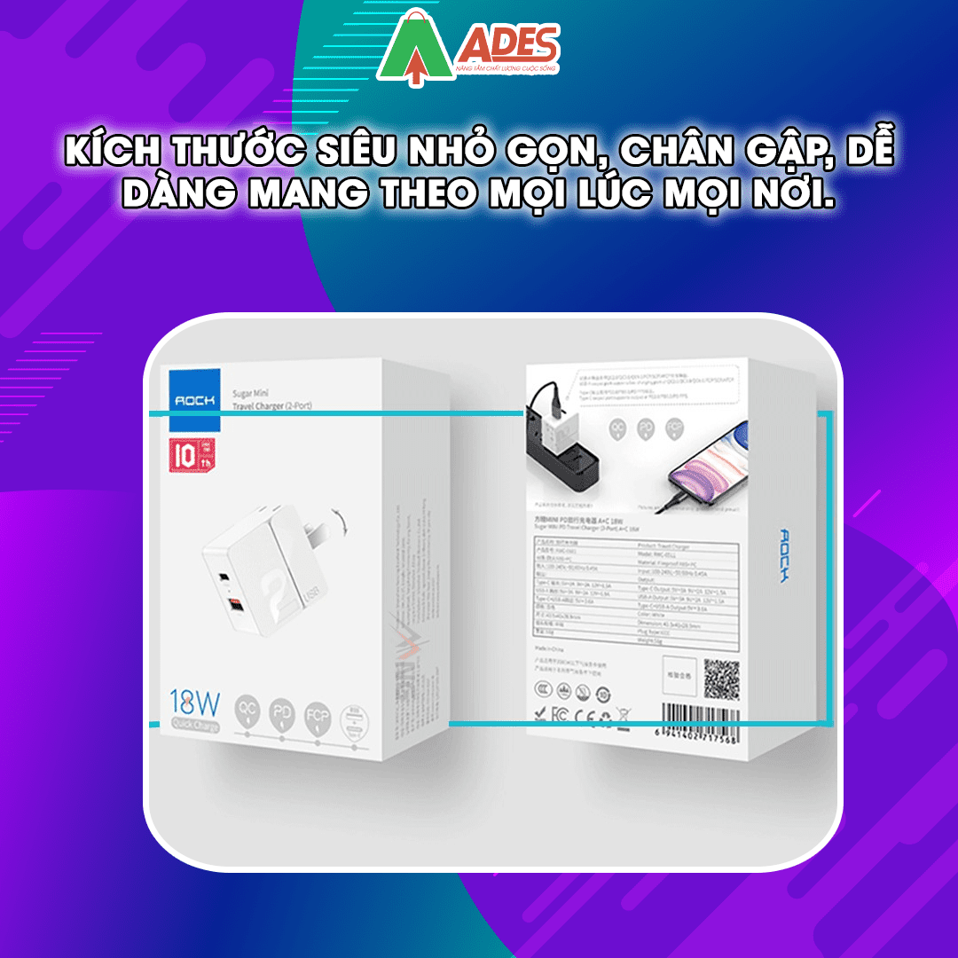 Củ sạc mini 2 cổng sạc nhanh Rockspace Sugar chuẩn sạc nhanh PD, QC. Hãy cùng ADES Vietnam tìm hiểu thêm về sản phẩm này nhé