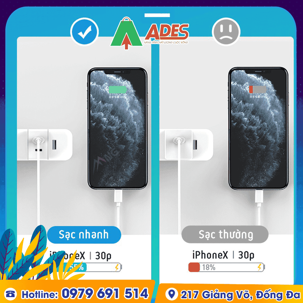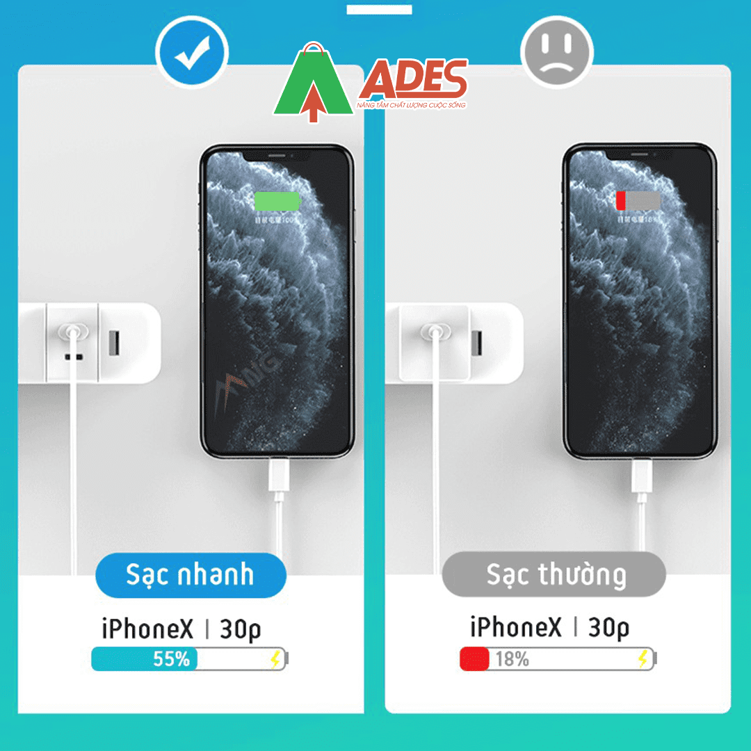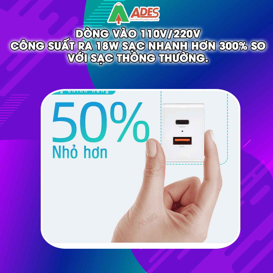 - Công suất ra 18w sạc nhanh hơn 300% so với sạc thông thường.