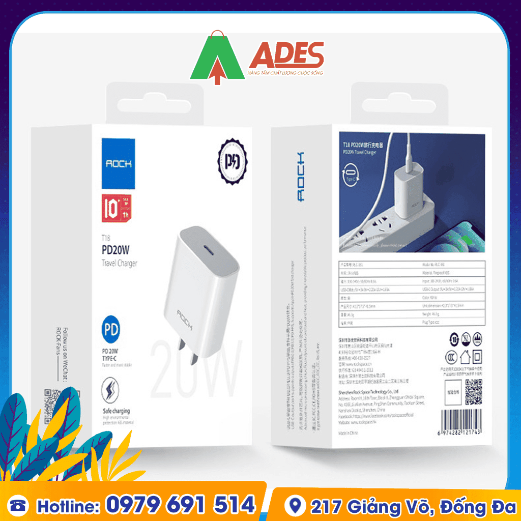 Củ sạc Rockspace T18 chuẩn sạc nhanh PD cho mọi dòng iphone, hỗ trợ sạc nhanh chuẩn PD cho IPhone, IPad từ IPhone 8 X, Xsmax, ip11, 11 pro max, 12 series, 13 series.. Hãy cùng ADES Vietnam tìm hiểu thêm về sản phẩm này nhé