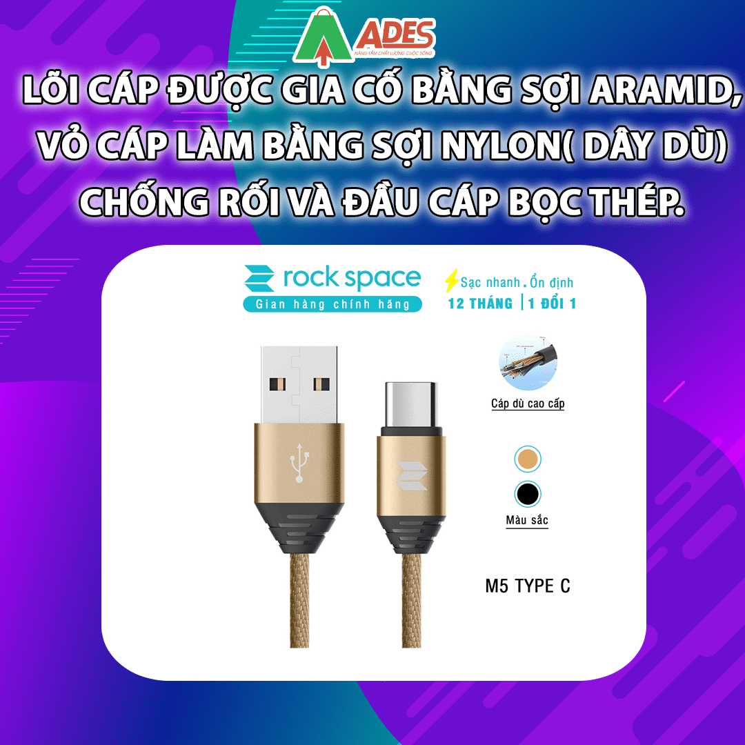 Dây cáp sạc Android Rockspace M5 độ dài 1m, sạc nhanh, ổn định, không nóng máy và cung cấp sạc nhanh cho nhiều loại máy. Hãy cùng ADES Vietnam tìm hiểu thêm về sản phẩm này nhé