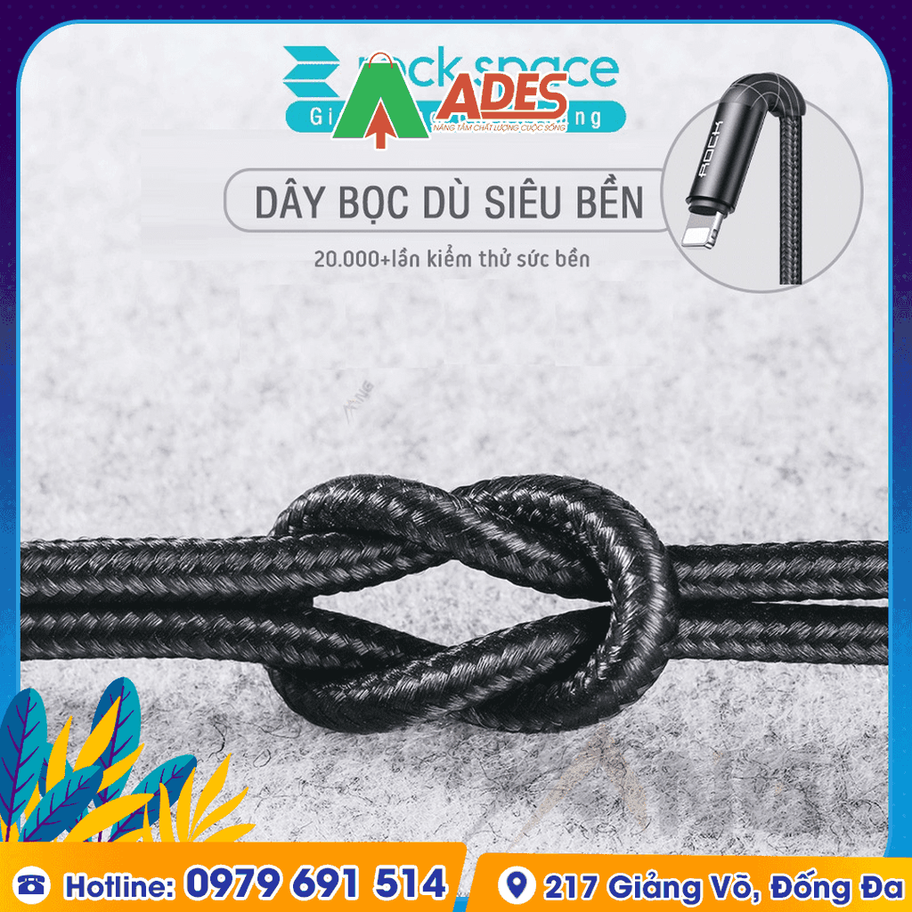 Sản phẩm Dây cáp sạc cho iphone Rockspace R2, dài 1m hiện đang được phân phối giá rẻ, chính hãng tại điện máy ADES. Để đặt mua sản phẩm, truy cập ngay vào website ADESTECH - HOTLINE 09.7969.1514 hoặc đến địa chỉ 217 Giảng Võ, Hà Nội để xem trực tiếp sản phẩm.