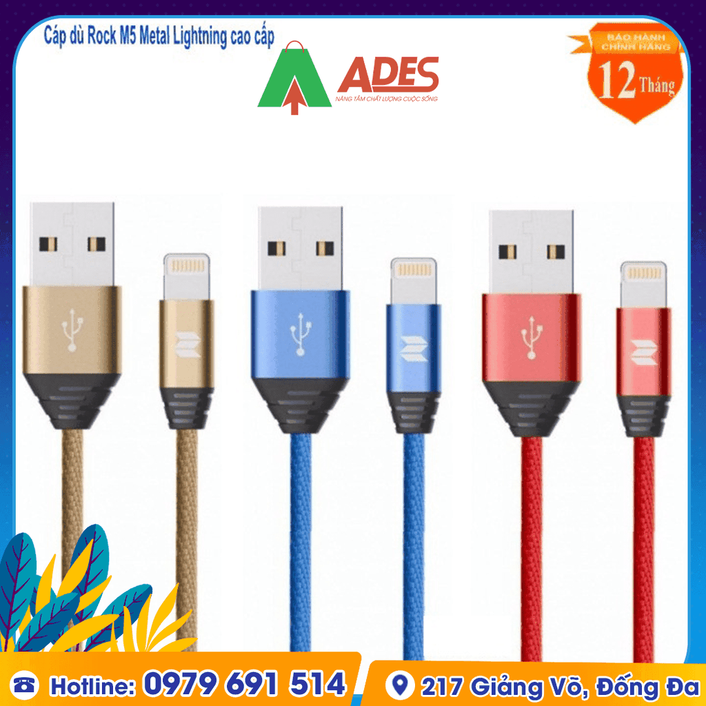 Sản phẩm Dây cáp sạc Iphone Rockspace M5 hiện đang được phân phối giá rẻ, chính hãng tại điện máy ADES. Để đặt mua sản phẩm, truy cập ngay vào website ADESTECH - HOTLINE 09.7969.1514 hoặc đến địa chỉ 217 Giảng Võ, Hà Nội để xem trực tiếp sản phẩm.