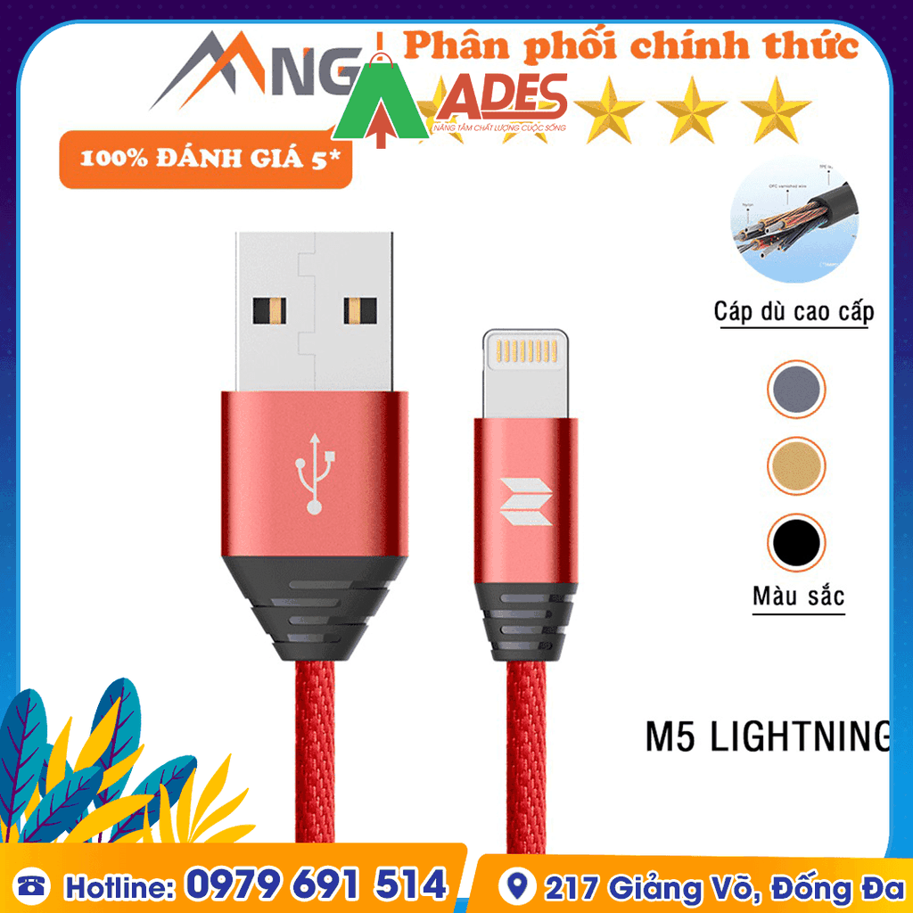 Dây cáp sạc Iphone Rockspace M5 độ dài 1m, sạc nhanh, ổn định, không nóng máy và cung cấp sạc nhanh cho nhiều loại máy. Hãy cùng ADES Vietnam tìm hiểu thêm về sản phẩm này nhé