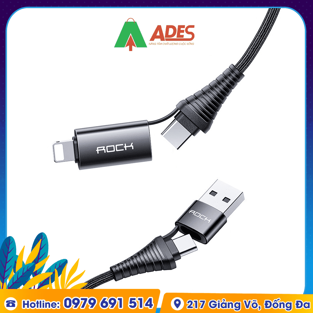 - Dây cáp sạc 4 in 1 Rockspace có thể sạc được mọi dòng điện thoại, máy tính bảng, laptop, Macbook, PC.