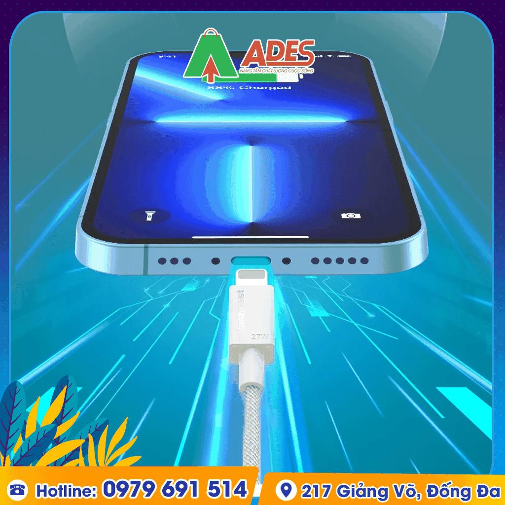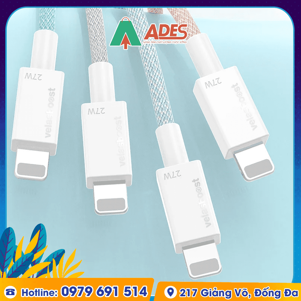 Dây Cáp sạc nhanh Velasboost Fast 27w là một trong những sợi cáp được phát triển và thiết kế bởi người Việt. Với nhiều công nghệ tiên tiến được tích hợp, hỗ trợ công nghệ sạc nhanh mới nhất hiện nay trên các dòng iPhone và iPad có hỗ trợ sạc nhanh. Hãy cùng ADES Vietnam tìm hiểu thêm về sản phẩm này nhé
