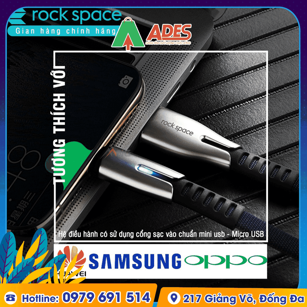 Dây cáp sạc nhanh Rockspace tương thích với các dòng điện thoại sử dụng hệ điều hành android như Samsung, OPPO, HUAWEI.... có sử dụng cổng sạc vào chuẩn type C