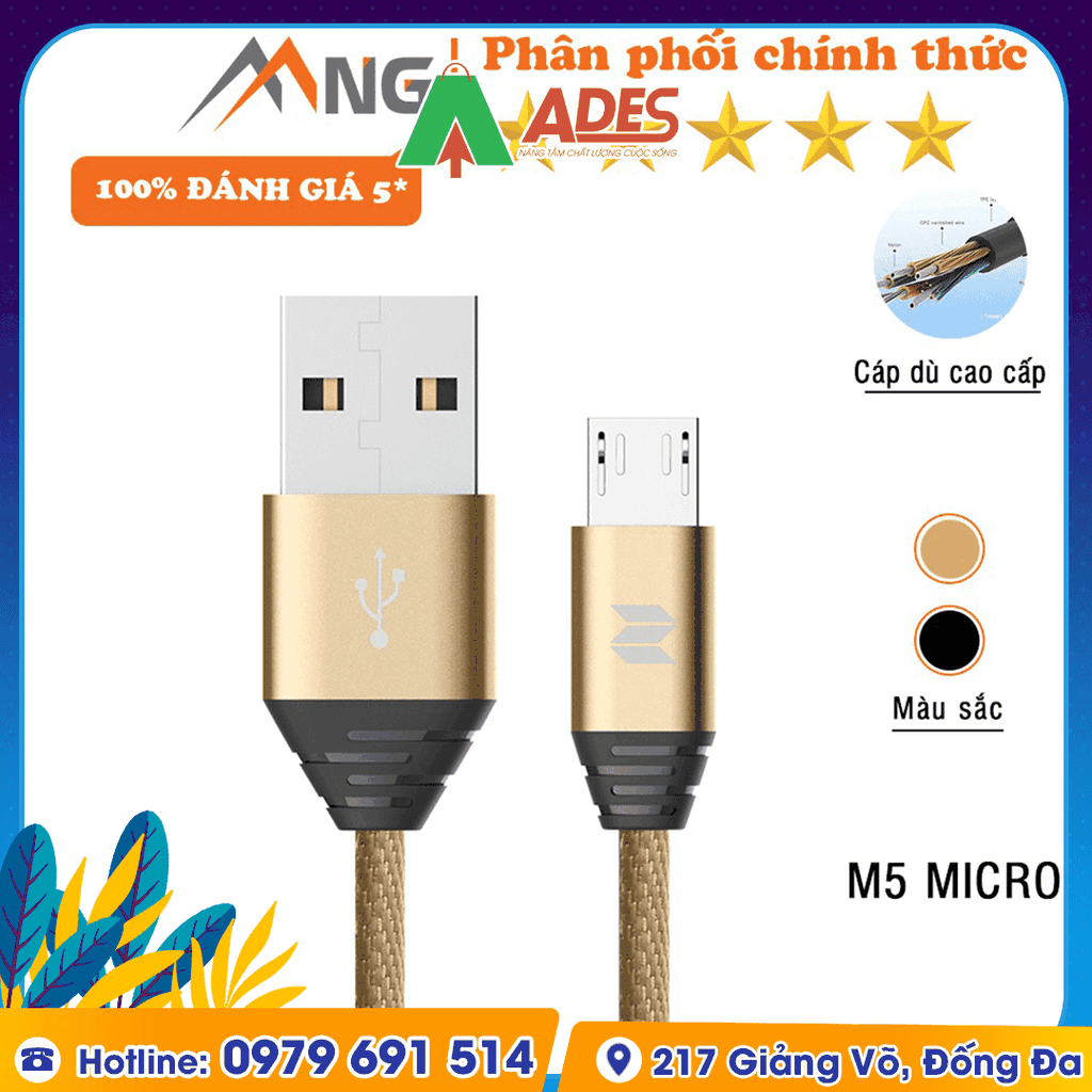 Dây cáp sạc Android Rockspace M5 độ dài 1m, sạc nhanh, ổn định, không nóng máy và cung cấp sạc nhanh cho nhiều loại máy. Hãy cùng ADES Vietnam tìm hiểu thêm về sản phẩm này nhé