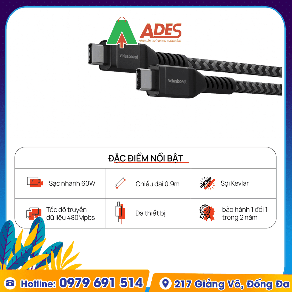 Dây Cáp Type C to Lightning Super Durable SD1 chuẩn MFi là sợi cáp đầu tiên được phát triển và thiết kế bởi người Việt. Với nhiều công nghệ tiên tiến được tích hợp, hỗ trợ công nghệ sạc nhanh mới nhất hiện nay trên các dòng iPhone và iPad có hỗ trợ sạc nhanh. Hãy cùng ADES Vietnam tìm hiểu thêm về sản phẩm này nhé!