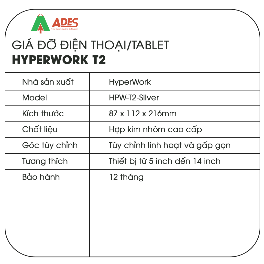Giá đỡ Ipad/Máy tính bảng nhôm HyperWork T2 được thiết kế nhỏ gọn, chất liệu cao cấp sẽ là sản phẩm hỗ trợ làm việc cực kỳ tốt. Hãy cùng ADES Vietnam tìm hiểu chi tiết về sản phẩm này nhé!