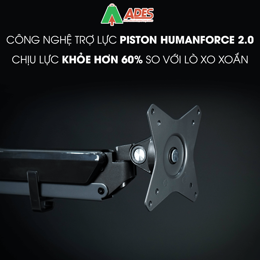 - Trang bị công nghệ trợ lực đặc biệt mang tên piston HumanForce 2.0 với sức mạnh chịu lực khỏe hơn 60% so với trục lò xo xoắn thông thường, mang đến sự bền bỉ và dẻo dai chưa từng có ở bất kỳ giá treo màn hình nào.