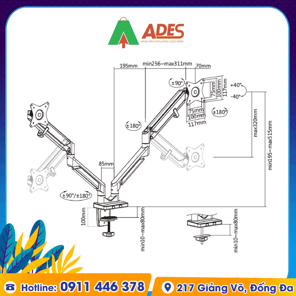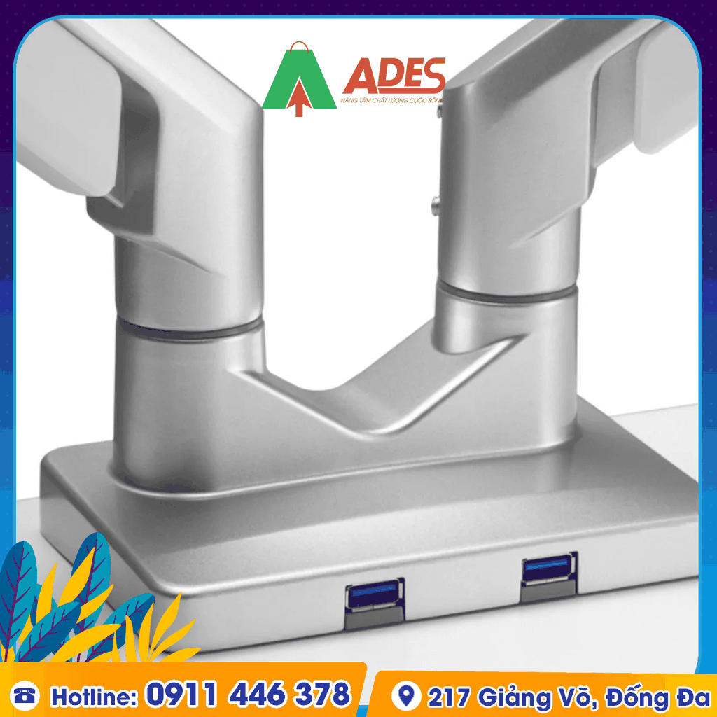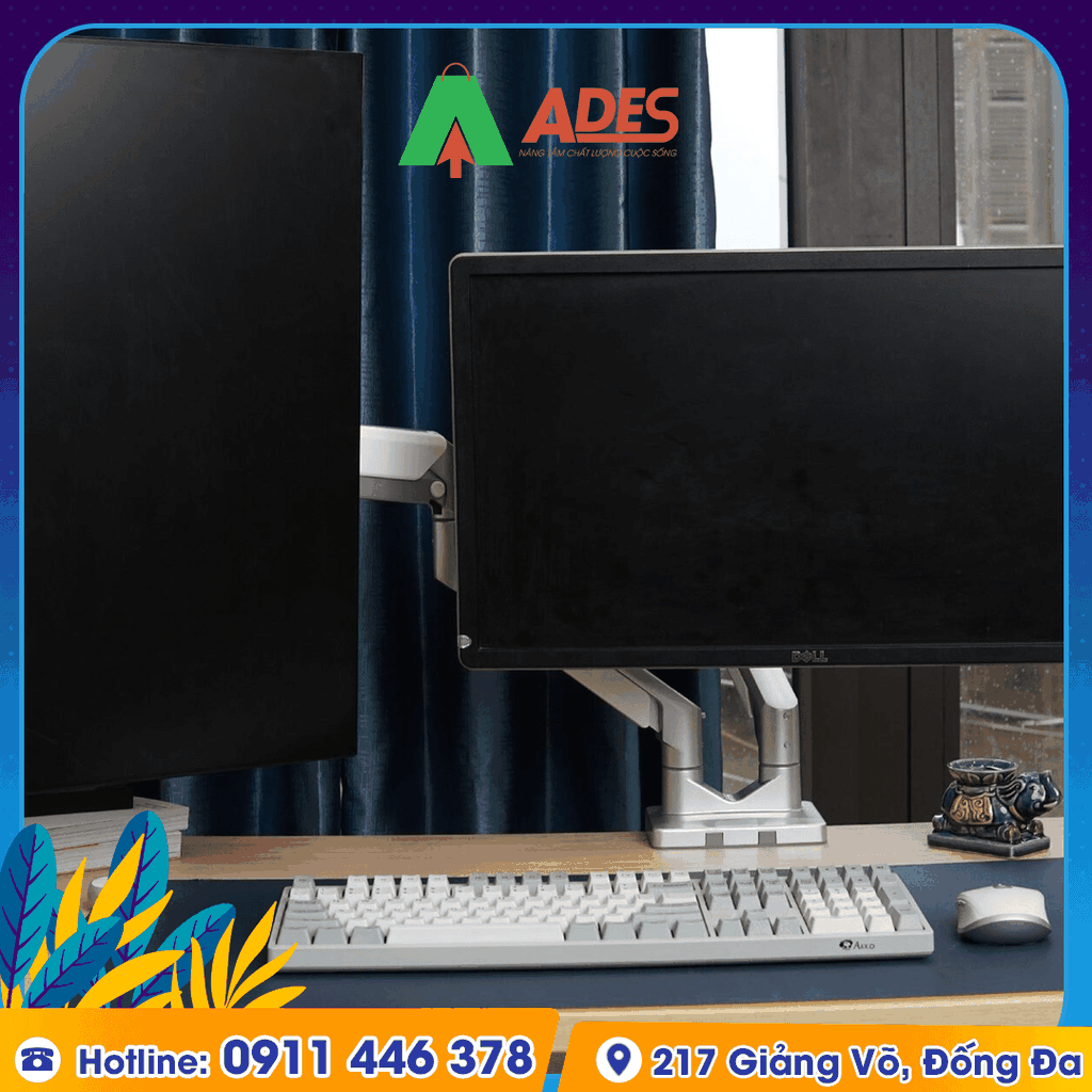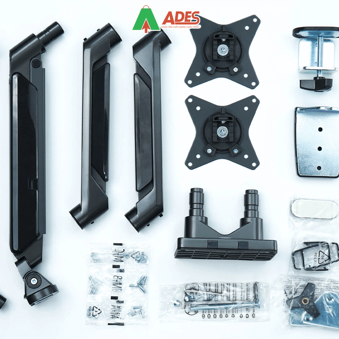 - Bạn có thể treo 2 chiếc màn hình có kích thước lớn từ 17 - 32 inch với VESA 75x75mm và 100x100mm, trọng lượng màn hình 1-9kg.
