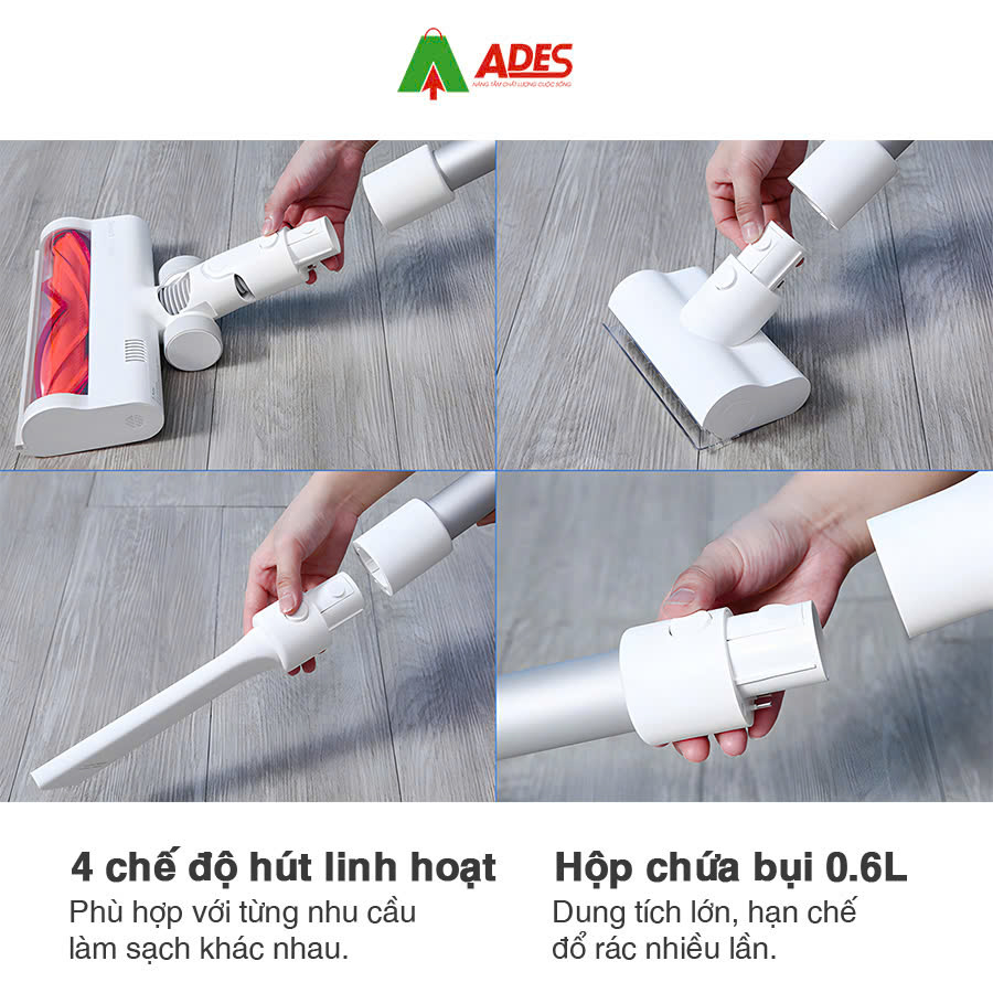 ✔️ Hộp chứa bụi 0.6L, tháo lắp dễ dàng, vệ sinh nhanh chóng. ✔️ 4 chế độ hút linh hoạt: tiết kiệm, tiêu chuẩn, mạnh và tự động. ✔️ Đế gắn tường thông minh, vừa sạc pin vừa lưu trữ thiết bị gọn gàng.