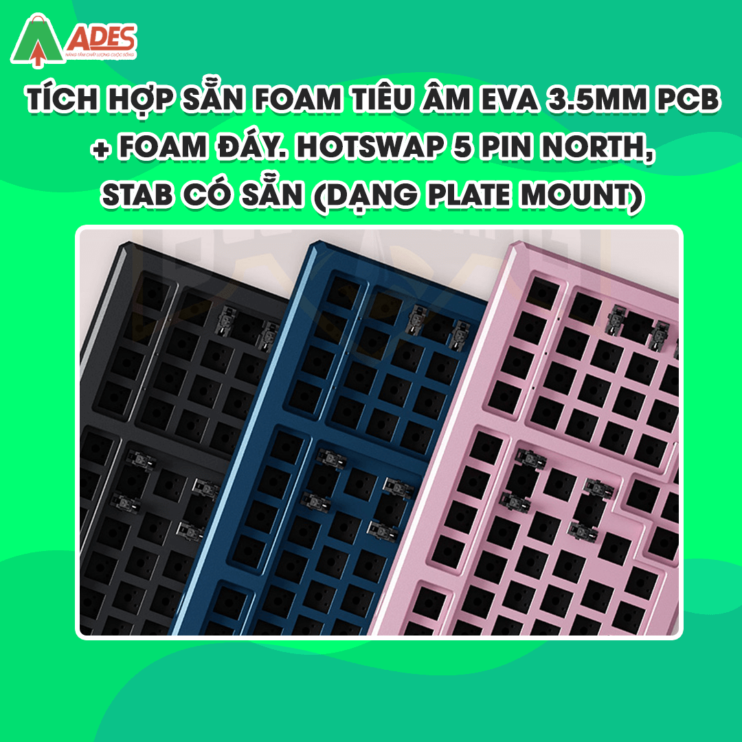 - Phần phím có sẵn foam tiêu âm EVA 3.5mm PCB và Hotswap 5 pin TTC socket, stab có sẵn (dạng plate mount), cho dù bạn đang có sẵn Switch 3pin cũng không cần quá lo lắng.