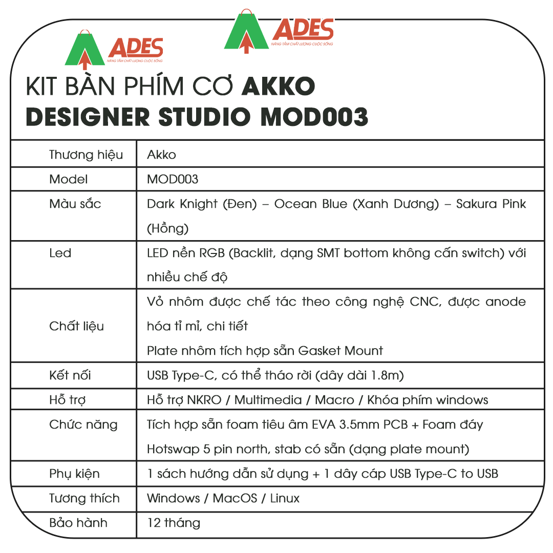 - Ngoài các ưu điểm trên, Kit bàn phím AKKO MOD003 có khả năng tương thích cao với nhiều hệ điều hành như Windows / MacOS / Linux.