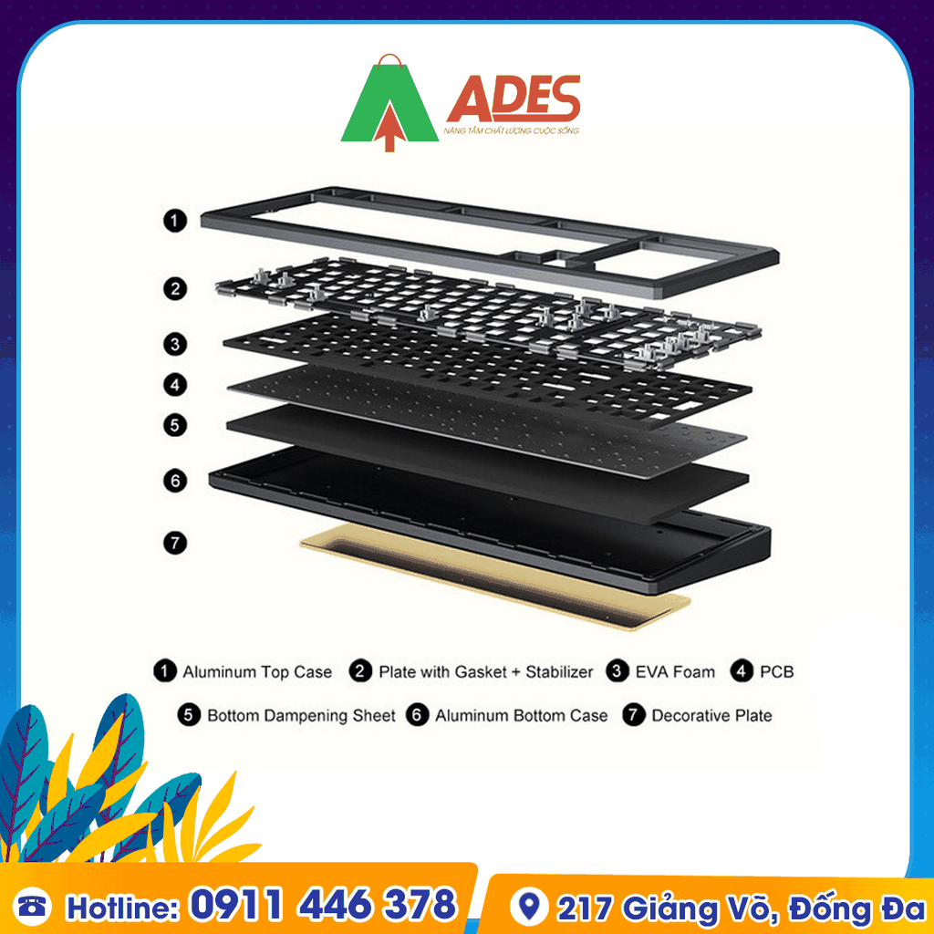 - Được trang bị sẵn foam tiêu âm EVA 3.5mm PCB nhằm tăng độ đầm tay và không tạo ra tiếng to khi gõ, bên cạnh đó, để hạn chế sự va chạm của phím với plate làm ồn.