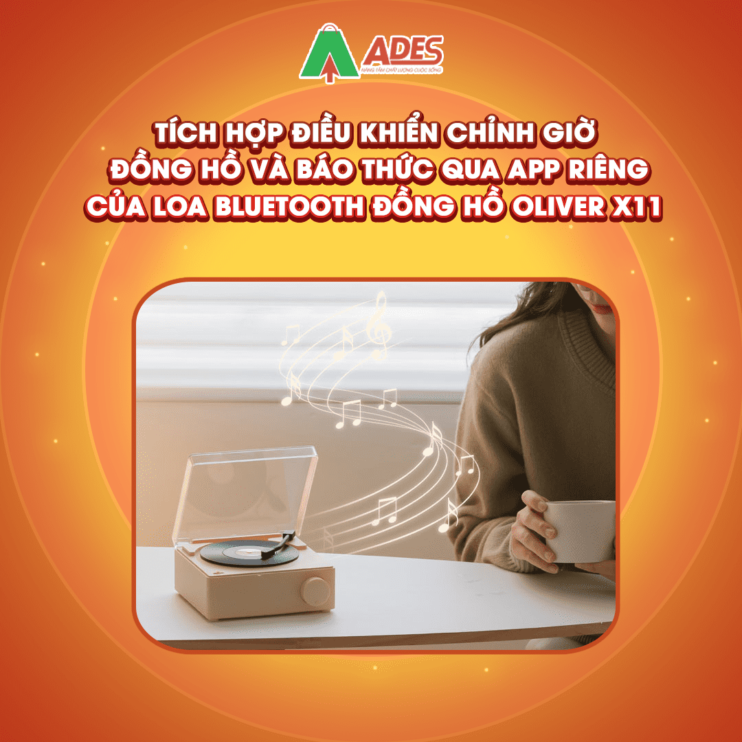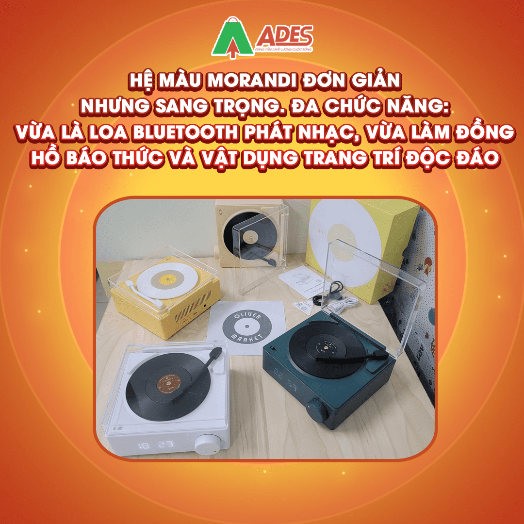 Loa Bluetooth Mini OLIVER X11 thiết kế đĩa than xoay mô phỏng máy phát nhạc ngày xưa kèm đồng hồ và báo thức được điều kiển qua App - là phiên bản nâng cấp của loa bluetooth mini đĩa than OLIVER X10 với việc nâng cấp chất liệu và bổ sung các tính năng cao cấp Hãy cùng ADES Vietnam tìm hiểu thêm về sản phẩm này nhé