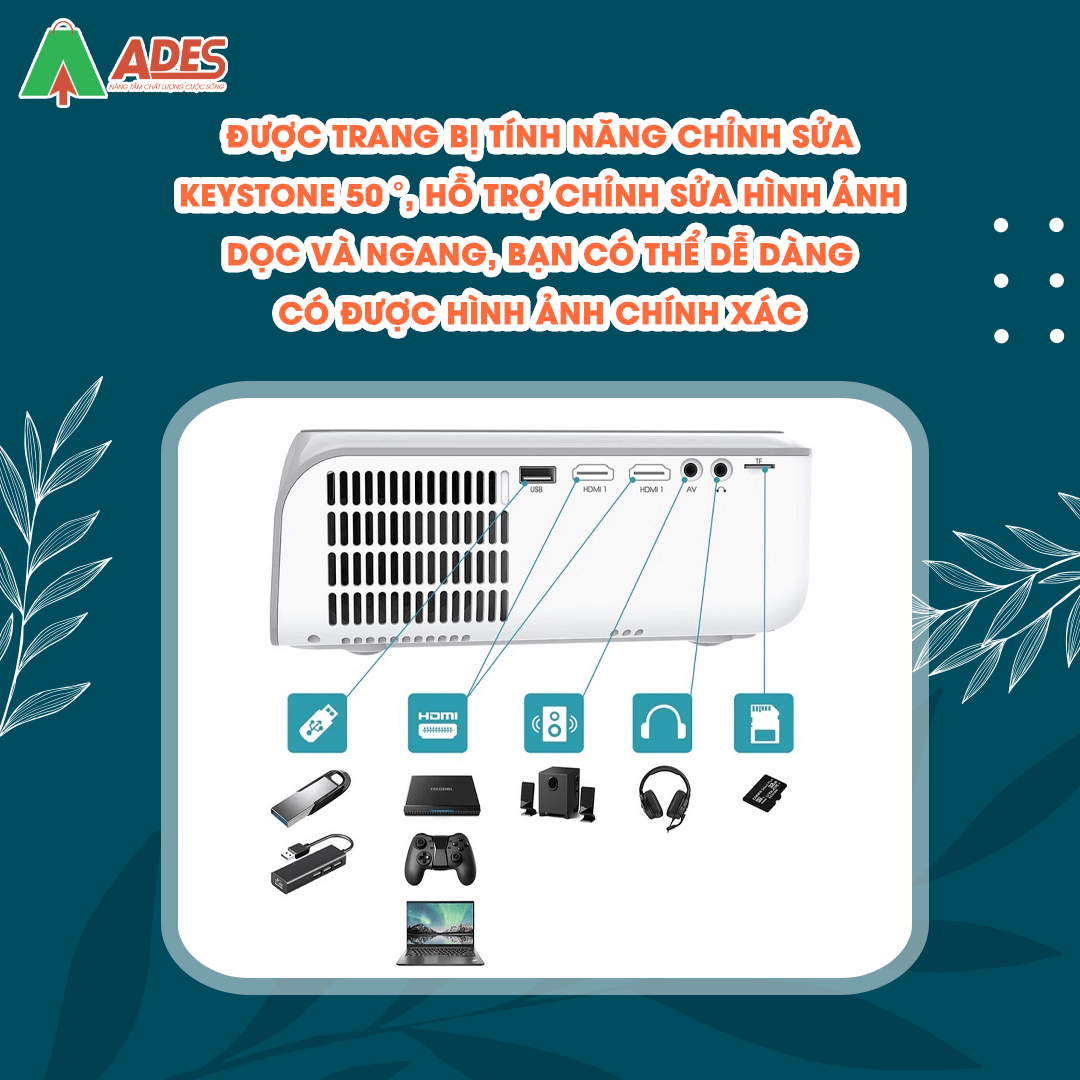 Màn hình lớn lên đến 240 inch. Nhiều thiết bị tương thích, điều chỉnh chức năng thu phóng và chỉnh sửa keystone bằng điều khiển từ xa. Được trang bị cổng HDMI / USB / thẻ TF / âm thanh, dễ dàng kết nối với PS5 / PC / Điện thoại thông minh / Máy tính bảng / thẻ TF, v.v.