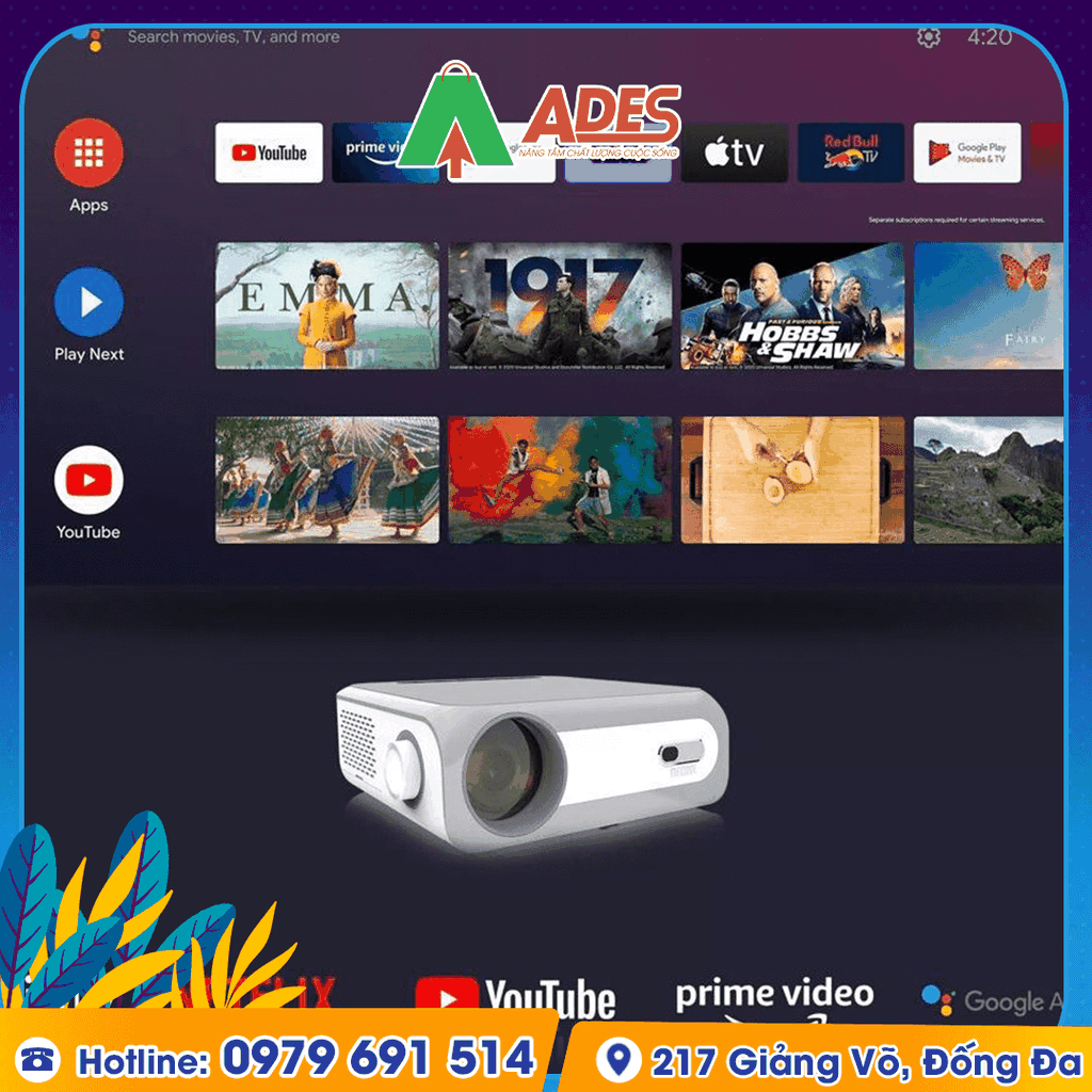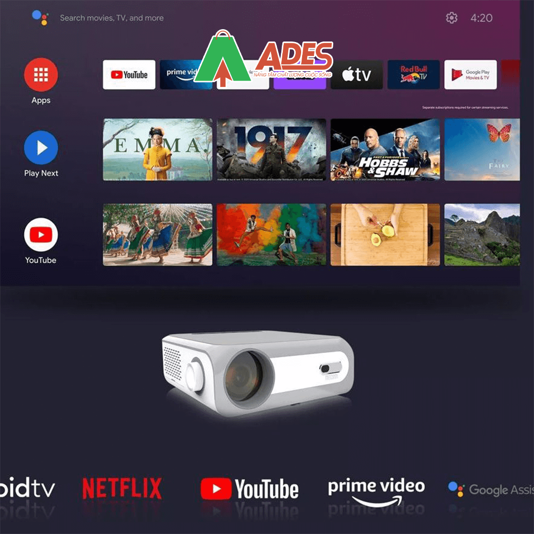 Đây là dòng máy chiếu giá rẻ đầu tiên có thể xem Netflix chuẩn 4k. Thực tế hầu hết các dòng máy chiếu tích hợp hệ điều hành Android hiện nay