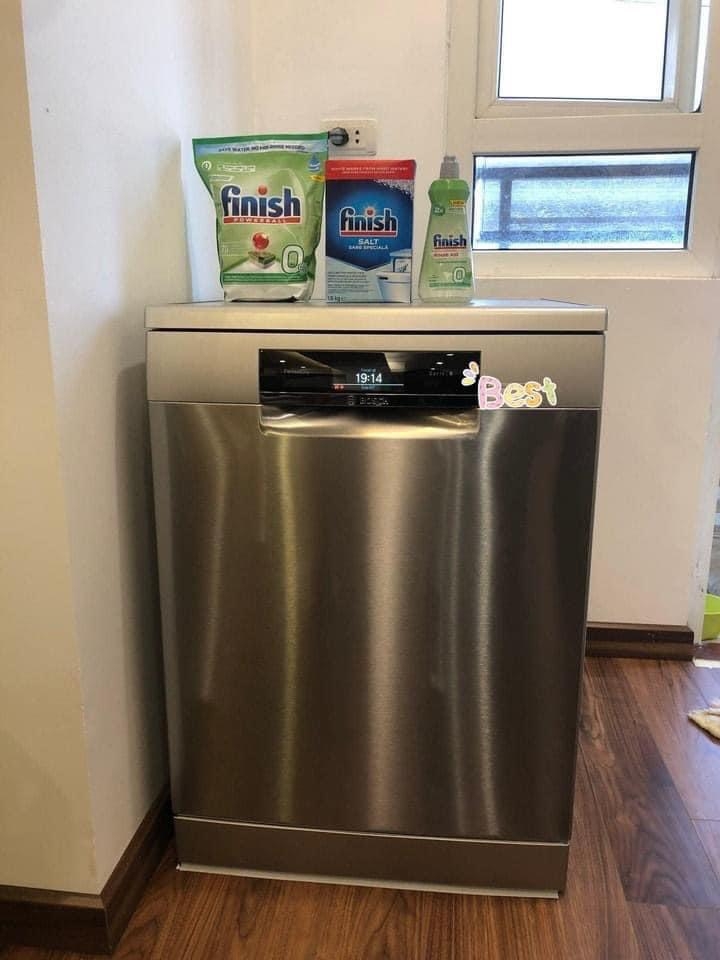Bosch SMS8YCI01E không chỉ là một chiếc máy rửa bát mà còn là thiết bị thông minh với khả năng kết nối ứng dụng Home Connect. Bạn có thể điều khiển máy từ xa qua điện thoại, nhận thông báo khi chu trình hoàn tất, hoặc thậm chí ra lệnh bằng giọng nói thông qua trợ lý ảo như Alexa. Tính năng này mang lại sự tiện lợi tối đa, đặc biệt với những người bận rộn.