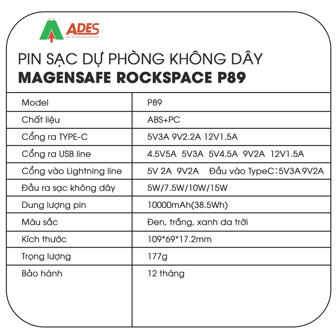 Pin sạc dự phòng không dây magensafe Rockspace P89 thiết kế nhỏ gọn với dung lượng lên đến 10000mAh và cung cấp sạc nhanh, sạc không dây cho nhiều loại máy. Hãy cùng ADES Vietnam tìm hiểu thêm về sản phẩm này nhé