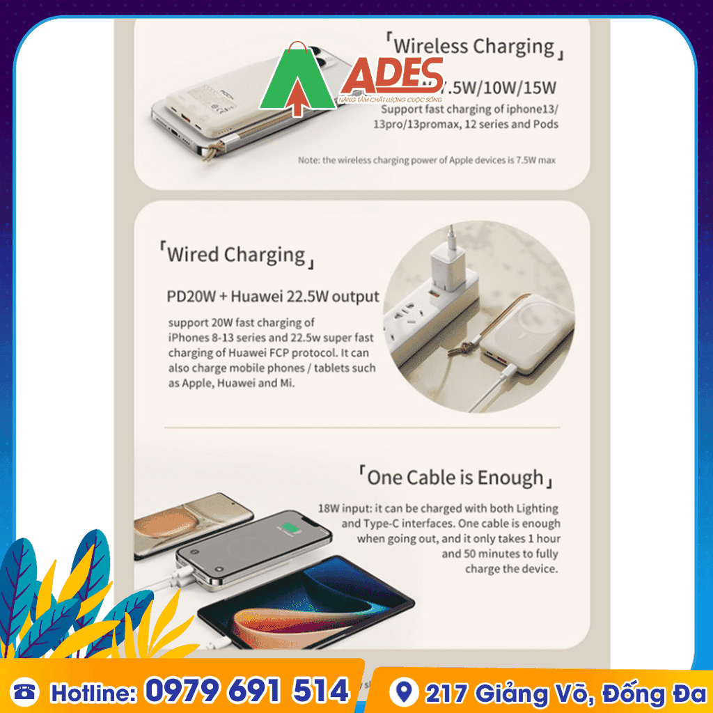 Sản phẩm Pin sạc dự phòng không dây magensafe Rockspace P89 10000mAh hiện đang được phân phối giá rẻ, chính hãng tại điện máy ADES. Để đặt mua sản phẩm, truy cập ngay vào website ADESTECH - HOTLINE 09.7969.1514 hoặc đến địa chỉ 217 Giảng Võ, Hà Nội để xem trực tiếp sản phẩm.