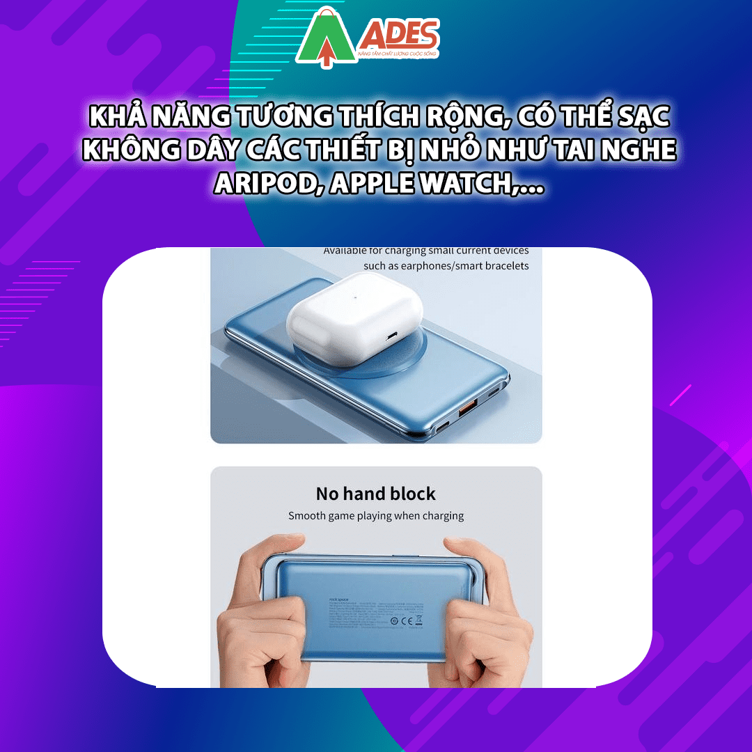 Khả năng tương thích rộng, có thể sạc không dây các thiết bị nhỏ như tai nghe aripod, apple watch,...