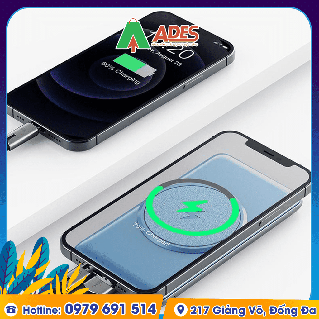 Có thể chuyển đổi giữa 2 chế độ sạc: sạc nhanh không dây chuẩn PD 20W dành cho iphone và sạc nhanh có dây typeC 2 chiều dành cho android công suất 10000mAh.