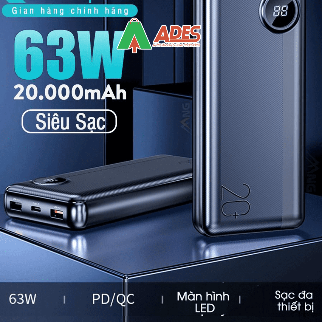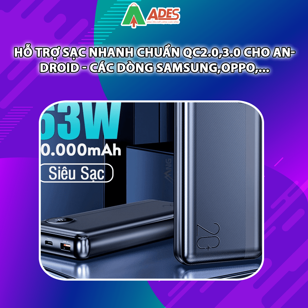 Công suất lớn lên đến 63W sạc được cho tất cả các thiết bị từ điện thoại, máy tính bảng đến laptop