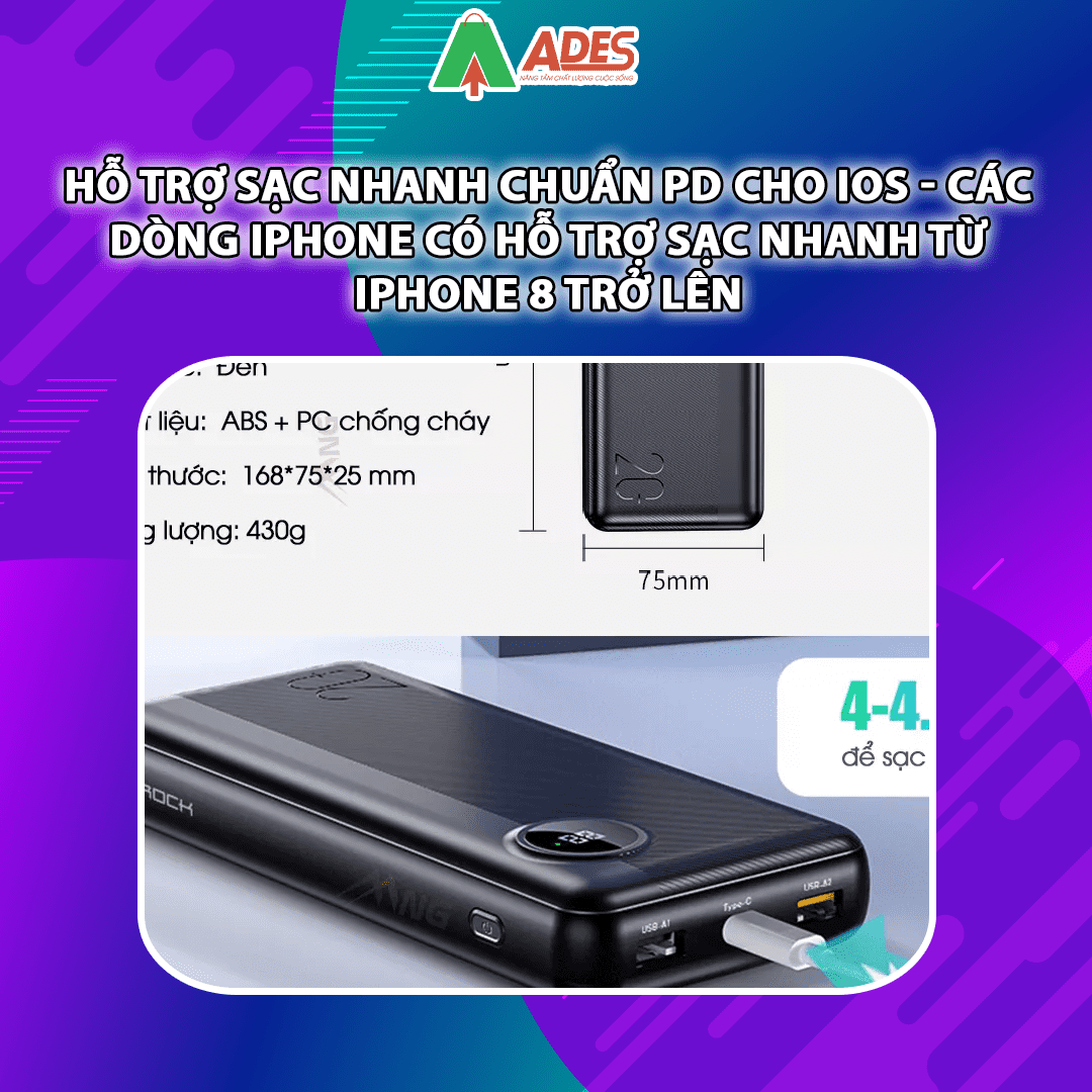 Pin sạc dự phòng Rockspace P75 thiết kế nhỏ gọn với dung lượng lớn lên đến 20000mAh và cung cấp sạc nhanh cho nhiều loại máy. Hãy cùng ADES Vietnam tìm hiểu thêm về sản phẩm này nhé