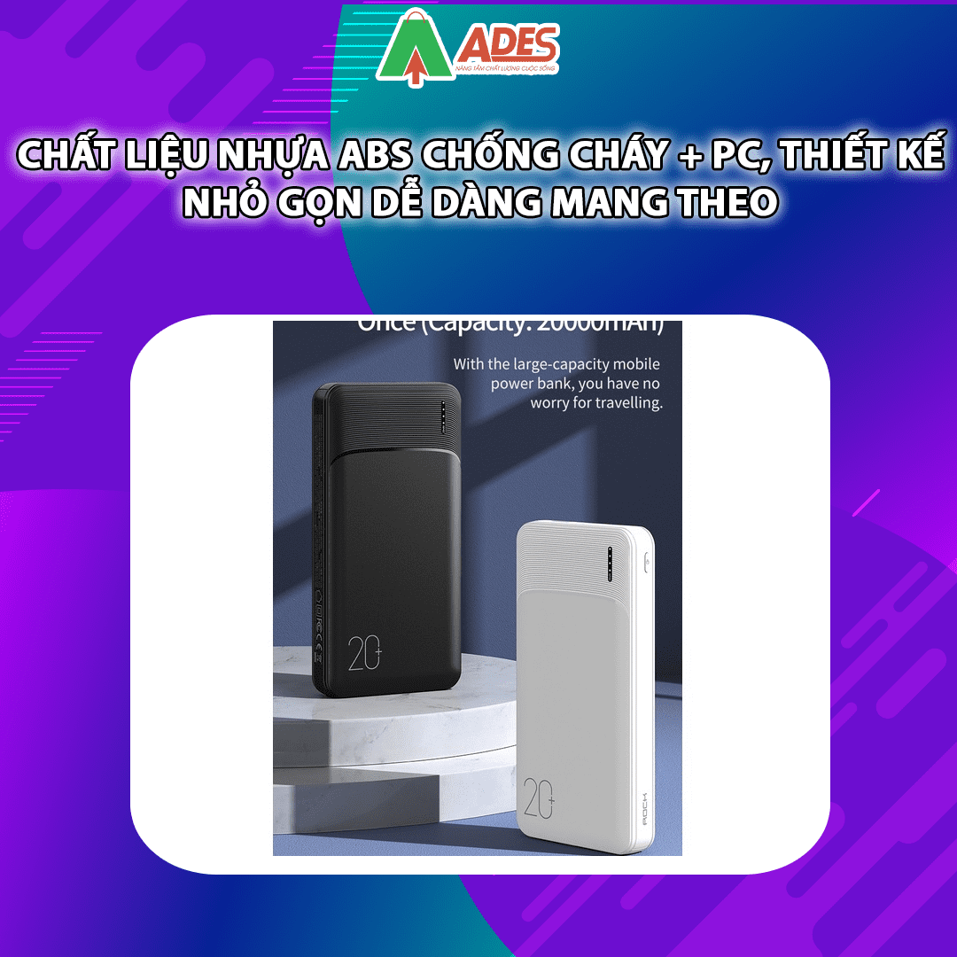 Pin sạc dự phòng Rockspace P200 được làm bằng chất liệu nhựa ABS chống cháy + PC, thiết kế nhỏ gọn dễ dàng cho vào túi khi đi làm, đi công tác, đi du lịch,...