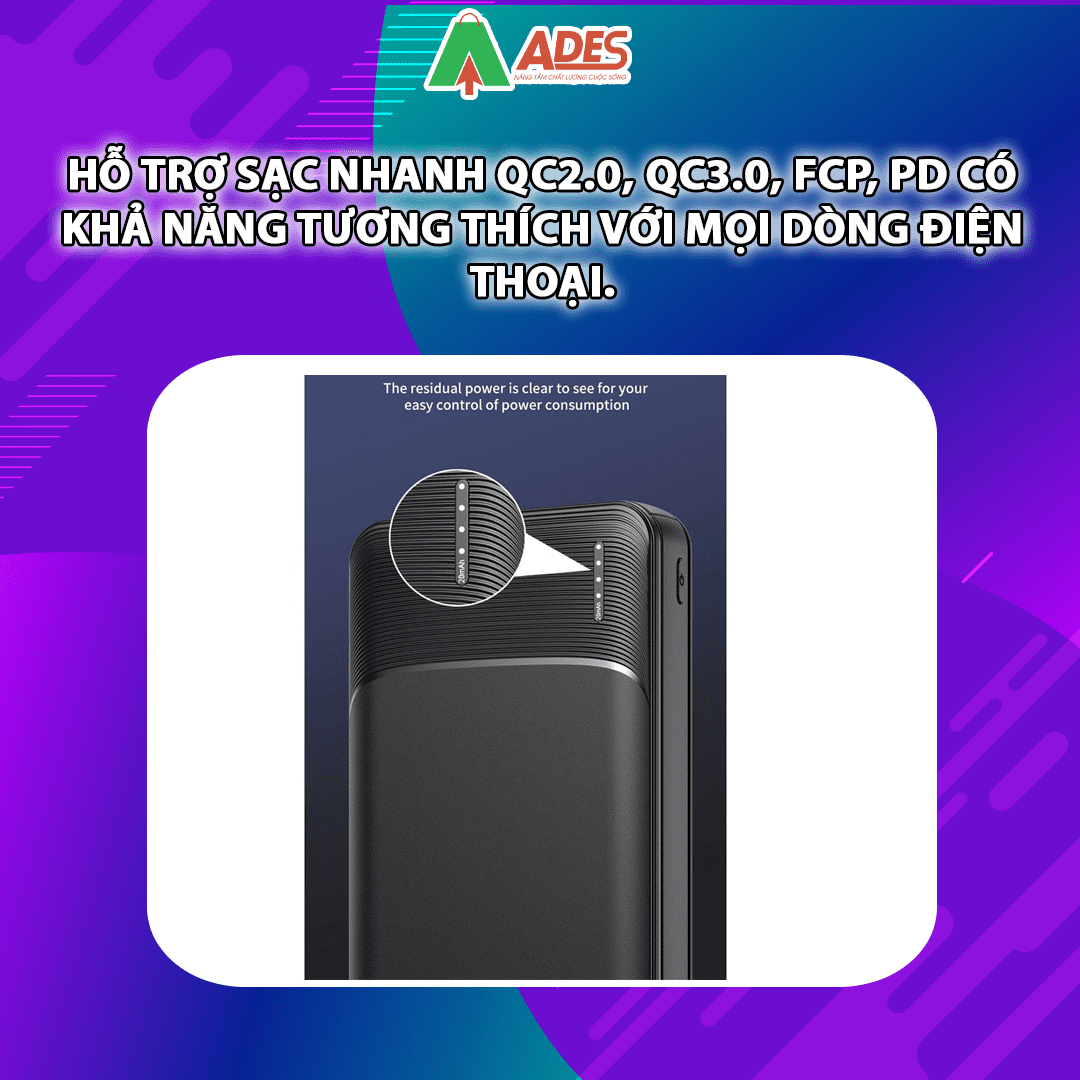 Pin sạc dự phòng Rockspace P200 hỗ trợ sạc nhanh QC2.0, QC3.0, FCP, PD có khả năng tương thích với mọi dòng điện thoại,máy tính bảng tích hợp chip thông minh giúp kiểm soát hiệu quả tình trạng quá tải và quá nhiệt, cung cấp hiệu suất ổn định hơn.