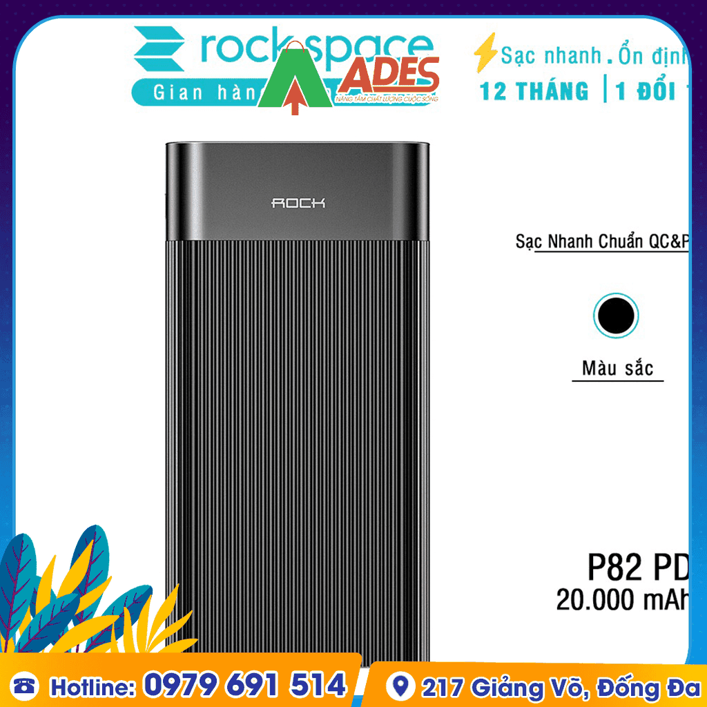 Sản phẩm Pin sạc dự phòng thích hợp chân cắm lightning Rockspace P82 hiện đang được phân phối giá rẻ, chính hãng tại điện máy ADES. Để đặt mua sản phẩm, truy cập ngay vào website ADESTECH - HOTLINE 09.7969.1514 hoặc đến địa chỉ 217 Giảng Võ, Hà Nội để xem trực tiếp sản phẩm.