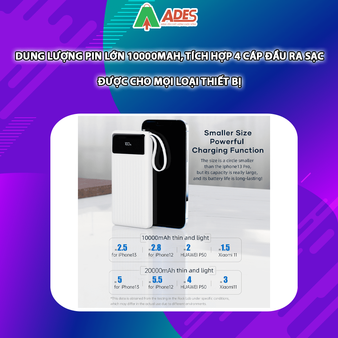 Pin sạc dự phòng tích hợp dây sạc Rockspace P79 thiết kế nhỏ gọn với dung lượng lên đến 10000mAh và cung cấp sạc nhanh 20W cho nhiều loại máy. Hãy cùng ADES Vietnam tìm hiểu thêm về sản phẩm này nhé
