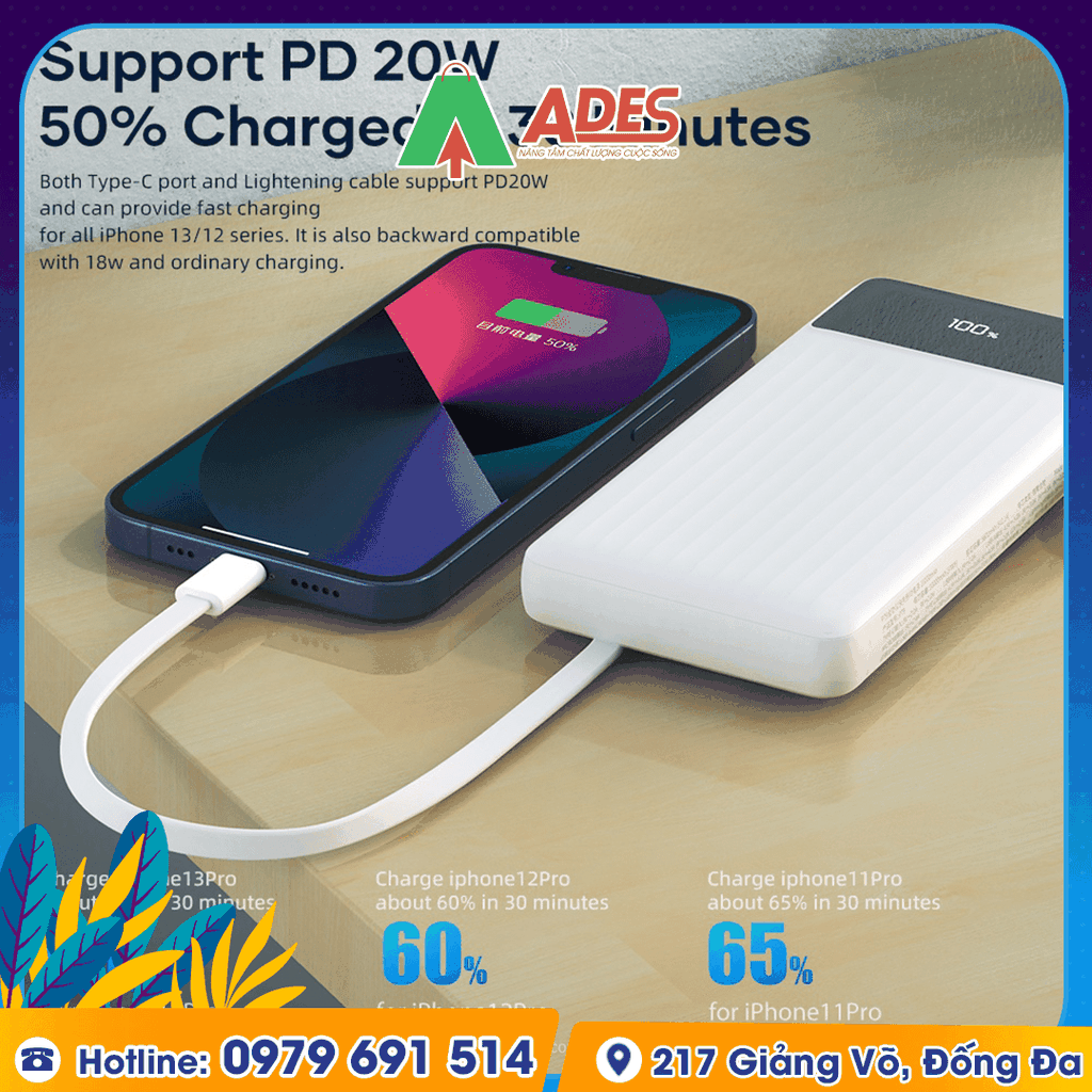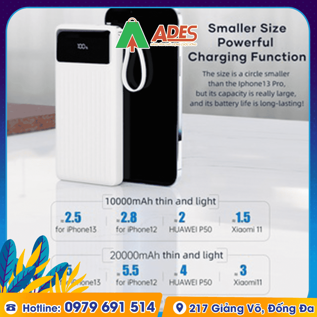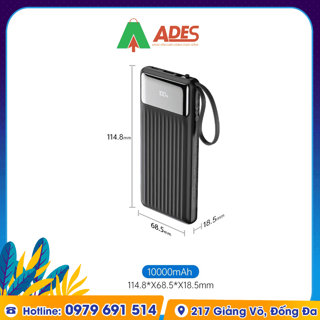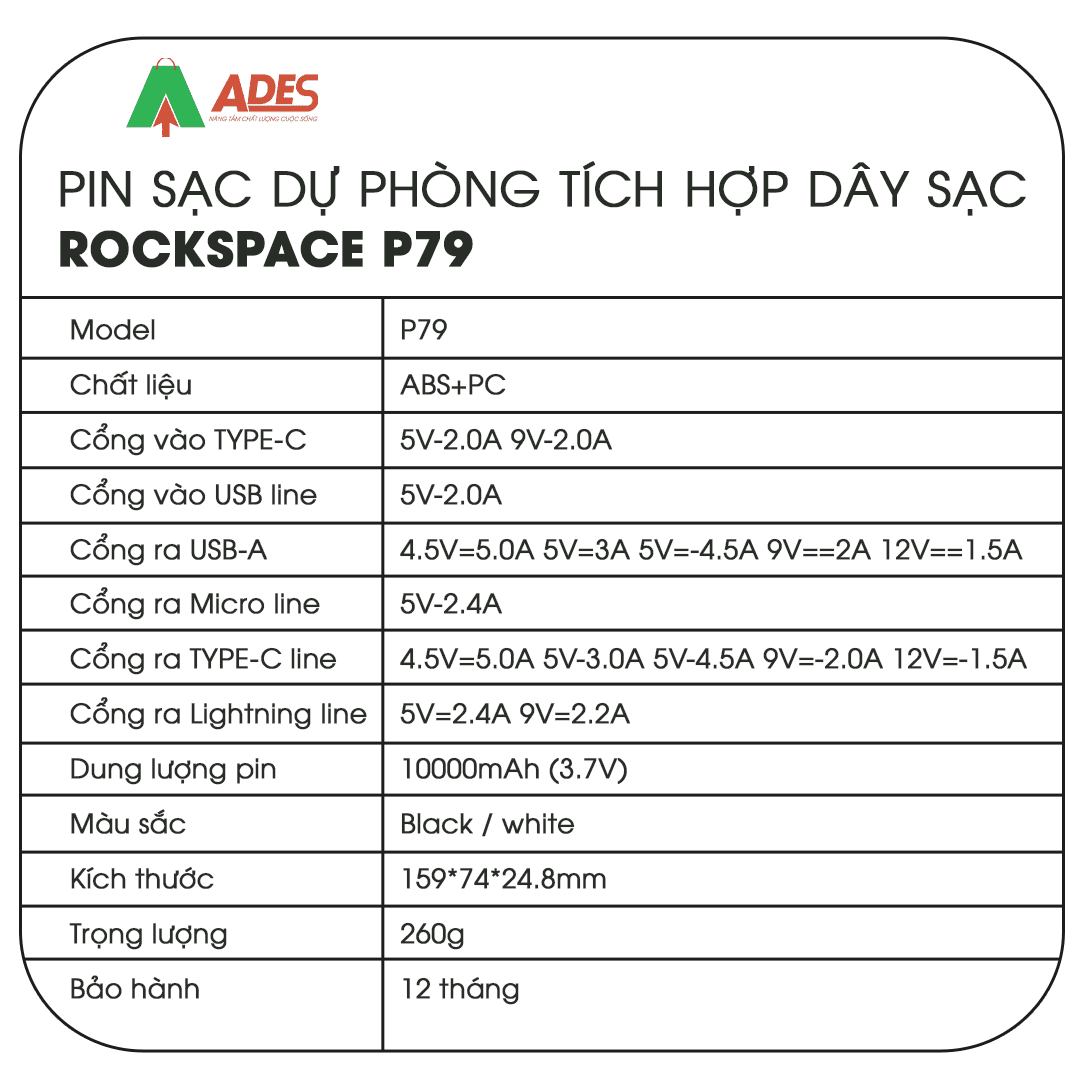 Sản phẩm Pin sạc dự phòng tích hợp dây sạc Rockspace P79 hiện đang được phân phối giá rẻ, chính hãng tại điện máy ADES. Để đặt mua sản phẩm, truy cập ngay vào website ADESTECH - HOTLINE 09.7969.1514 hoặc đến địa chỉ 217 Giảng Võ, Hà Nội để xem trực tiếp sản phẩm.