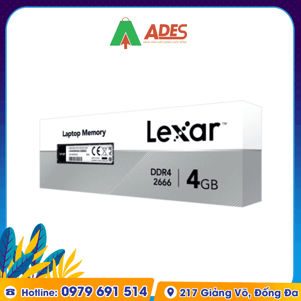 Sản phẩm Ram Laptop Lexar 4GB DDR4 2666MHz (LD4AS004G-R2666G) hiện đang được phân phối chính hãng tại ADESTECH, khách hàng có nhu cầu mua bán sỉ, bán buôn sản phẩm liên hệ ngay HOTLINE 09.7969.1514 hoặc địa chỉ 217 Giảng Võ để được tư vấn trực tiếp tại khu vực nội thành Hà Nội