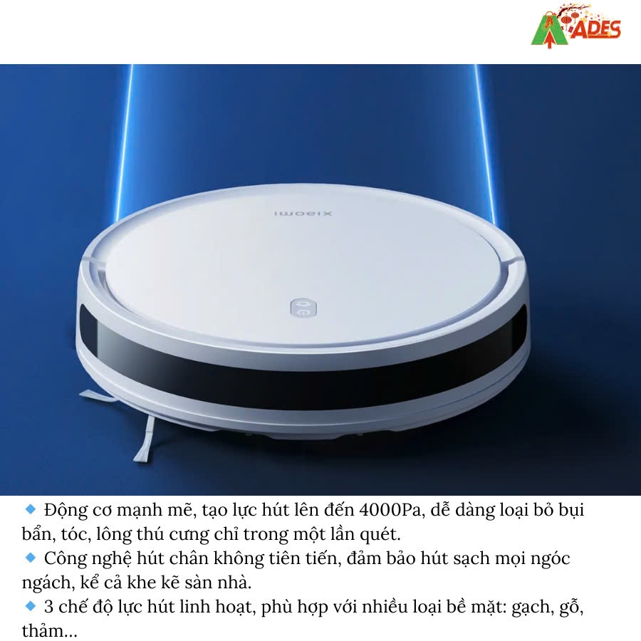 Bạn đang tìm kiếm một chiếc robot hút bụi thông minh, mạnh mẽ và tiện lợi với giá cả hợp lý? Xiaomi E10 chính là lựa chọn tuyệt vời dành cho bạn! Với thiết kế siêu mỏng, lực hút mạnh mẽ cùng công nghệ điều hướng thông minh, E10 giúp làm sạch hiệu quả ngay cả ở những khu vực khó tiếp cận nhất.