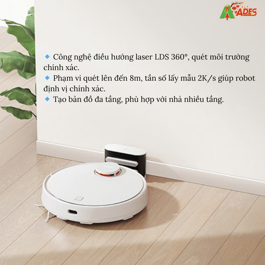 ✨ Điều hướng laser LDS 360°: Quét không gian chính xác, tạo bản đồ thông minh giúp tối ưu lộ trình dọn dẹp.
