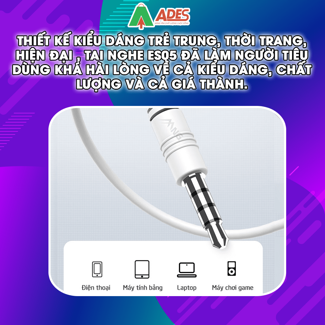 Thiết kế kiểu dáng trẻ trung, thời trang, hiện đại , tai nghe ES05 đã làm người tiêu dùng khá hài lòng về cả kiểu dáng, chất lượng và cả giá thành.