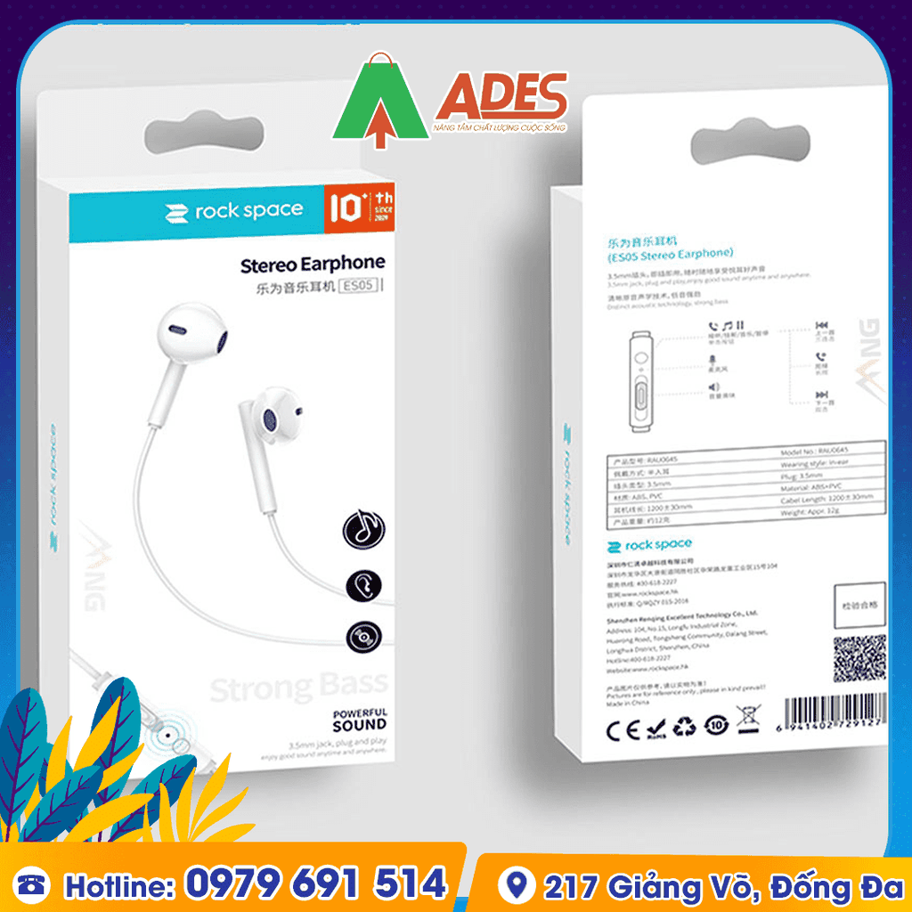Tai Nghe Có Dây Nhét Tai cho Android Rockspace ES05 có thể nói là một sản phẩm NGON - BỔ - RẺ mà các bạn đang tìm kiếm. Hãy cùng ADES Vietnam tìm hiểu thêm về sản phẩm này nhé