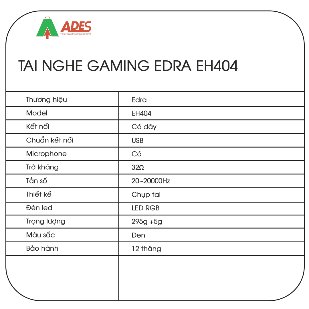 Tai nghe Gaming Edra EH404 hiện đang được phân phối giá rẻ, chính hãng tại điện máy ADES. Để đặt mua sản phẩm, truy cập ngay vào website ADESTECH - HOTLINE 09.7969.1514 hoặc đến địa chỉ 217 Giảng Võ, Hà Nội để xem trực tiếp sản phẩm.