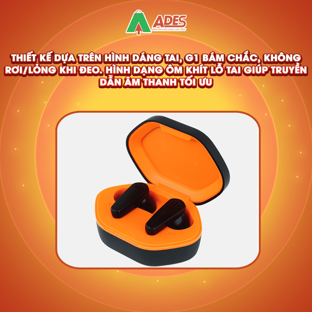 Tai nghe được thiết kế dựa trên hình dáng tai, G1 bám chắc, không rơi/lỏng khi đeo. Hình dạng ôm khít lỗ tai giúp truyền dẫn âm thanh tối ưu.