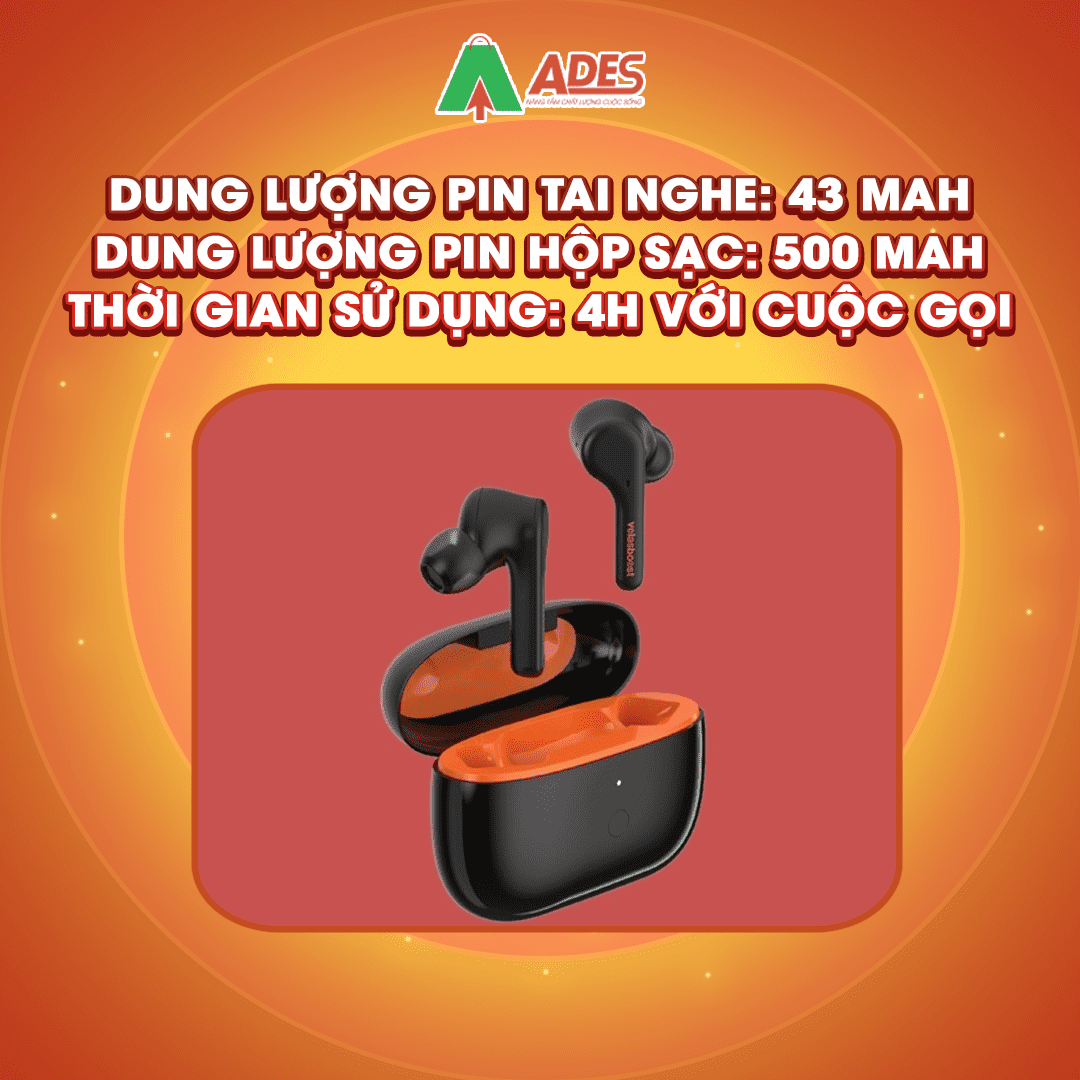 Khi sử dụng tai nghe true wireless thì yếu tố được nhiều người quan tâm nhất chính là thời lượng sử dụng. Và Velasboost LAM là một chiếc tai nghe có thời lượng pin tốt với 4h gọi đàm thoại liên tục và chơi nhạc ở mức âm lượng 60% với ANC nó cũng đạt được 4h đủ để bạn nghe "chán".